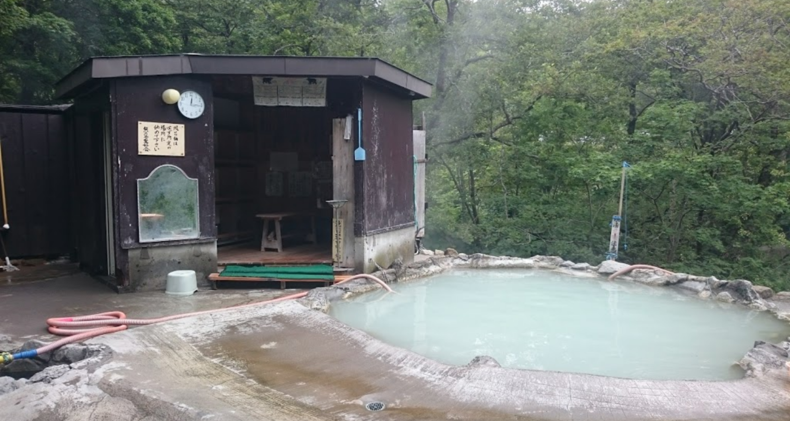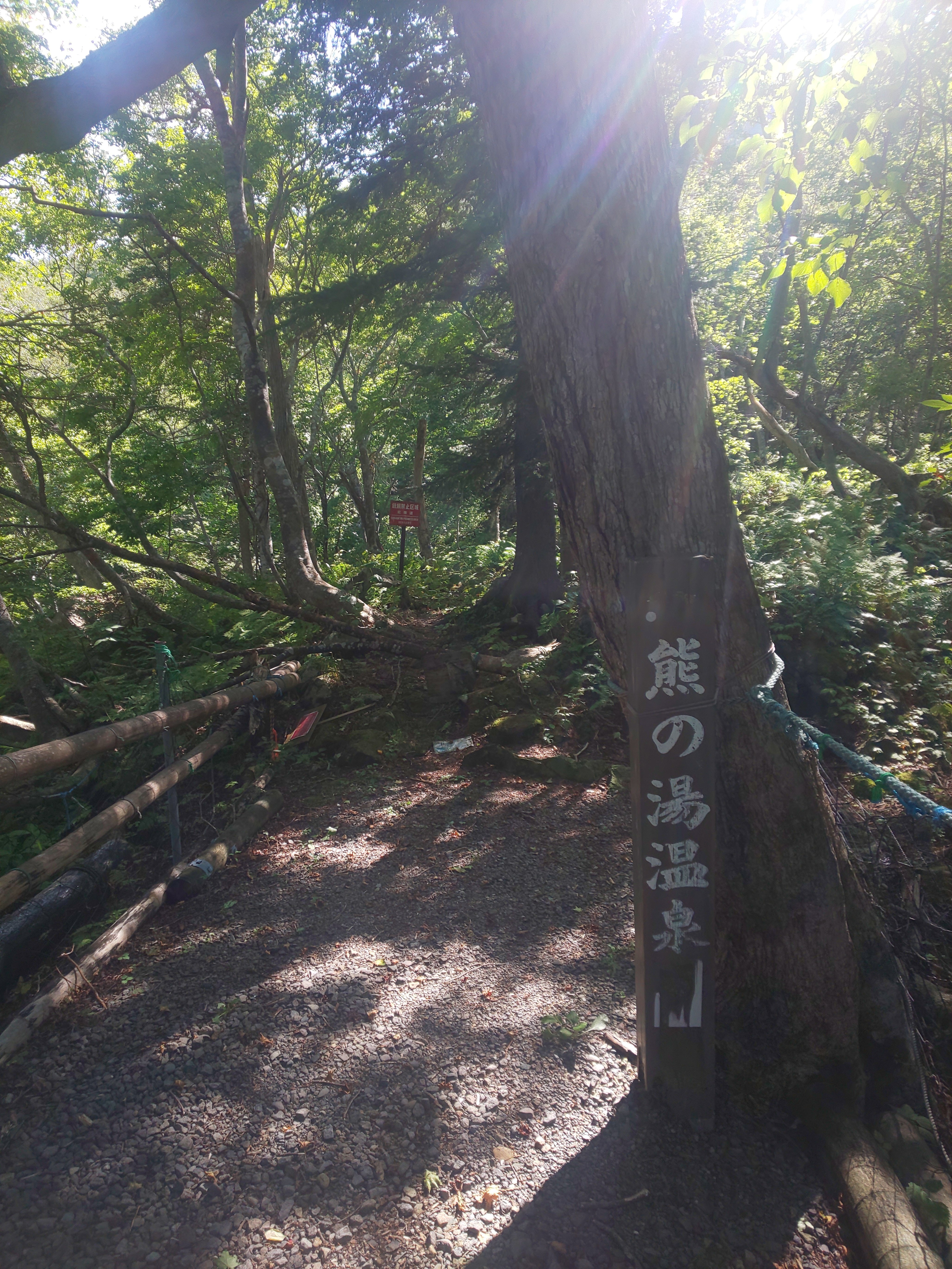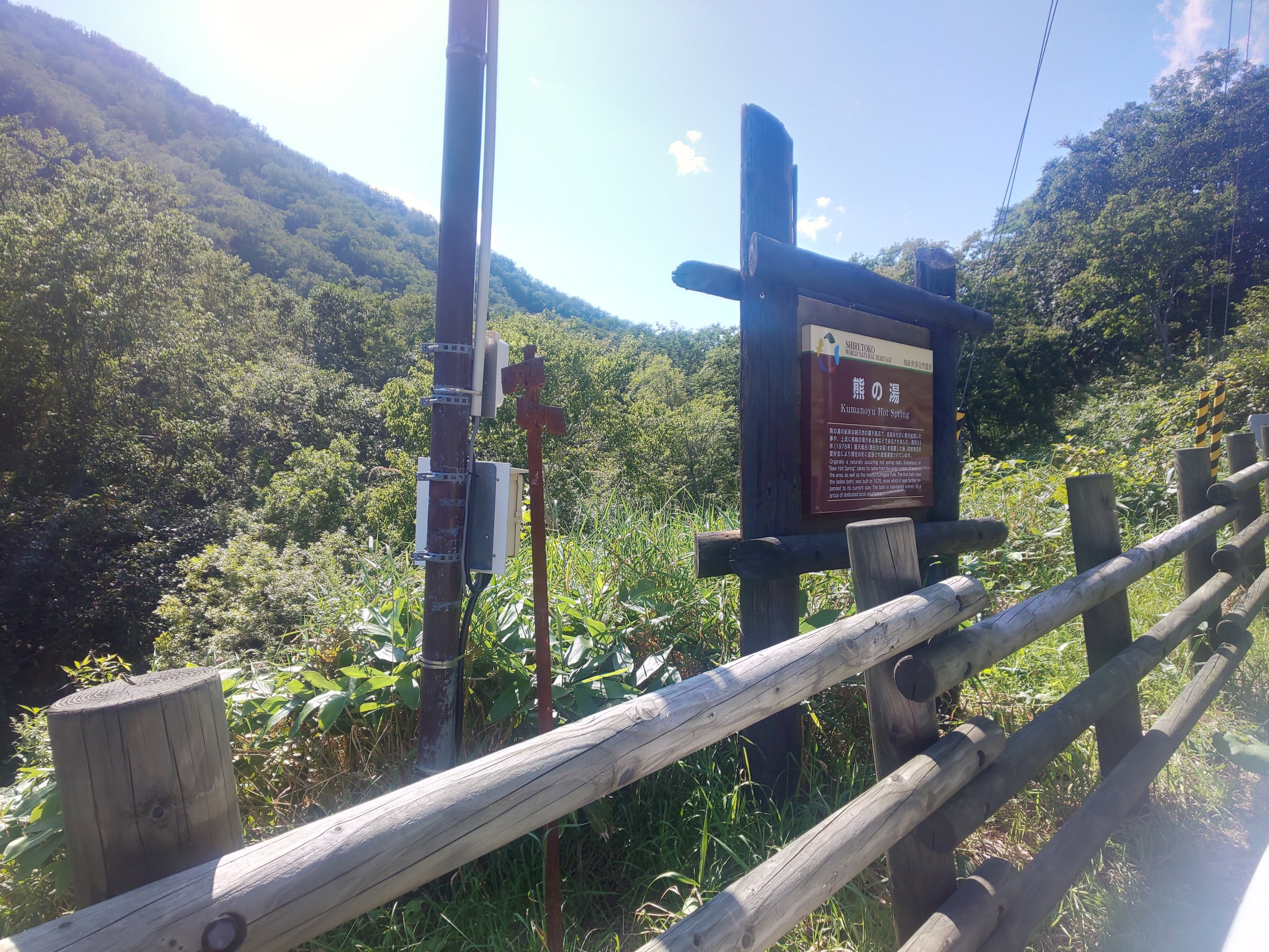 坂道を下っていると硫黄の匂いがしてくる所がある。その近くに熊の湯はあります。