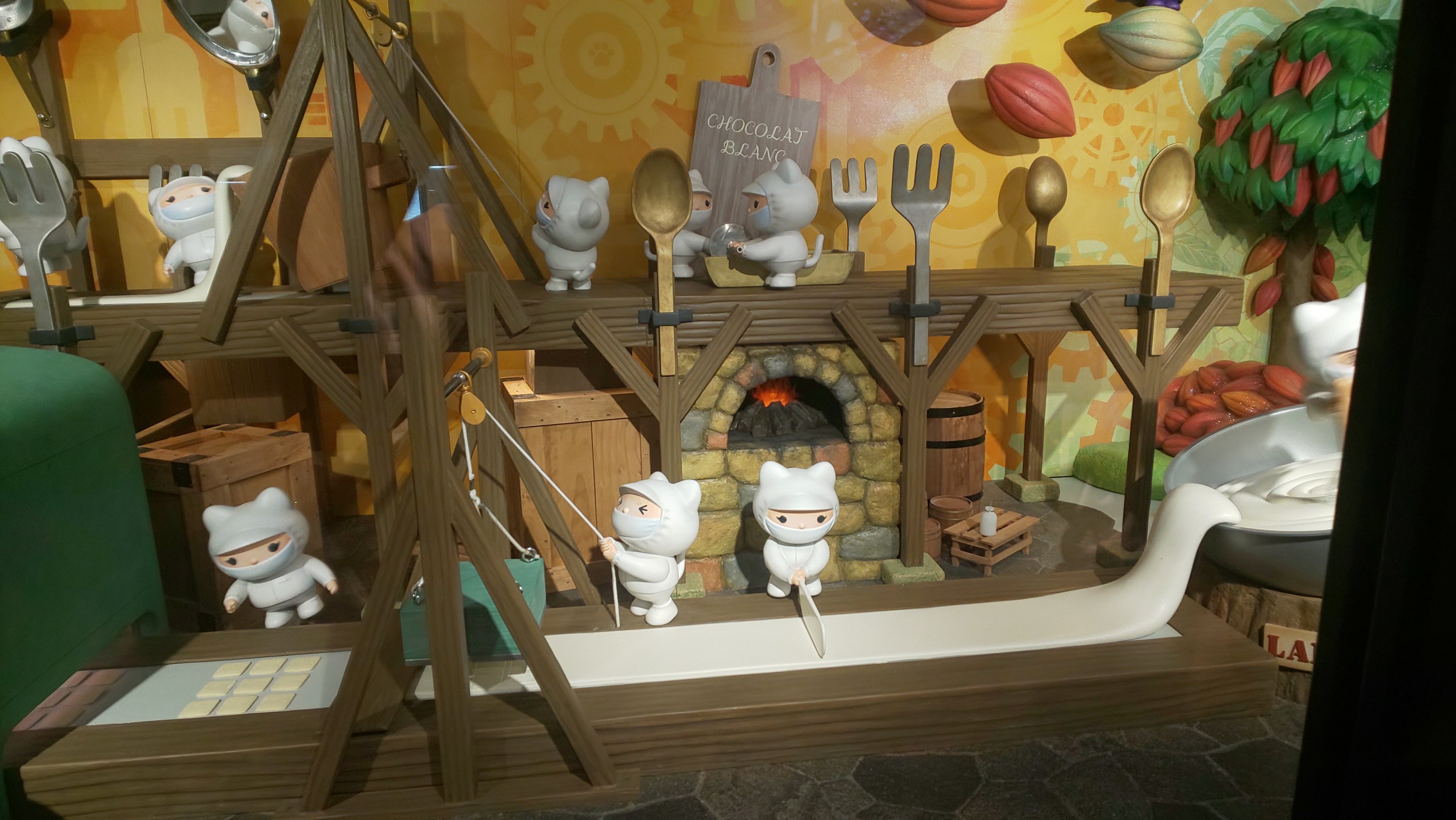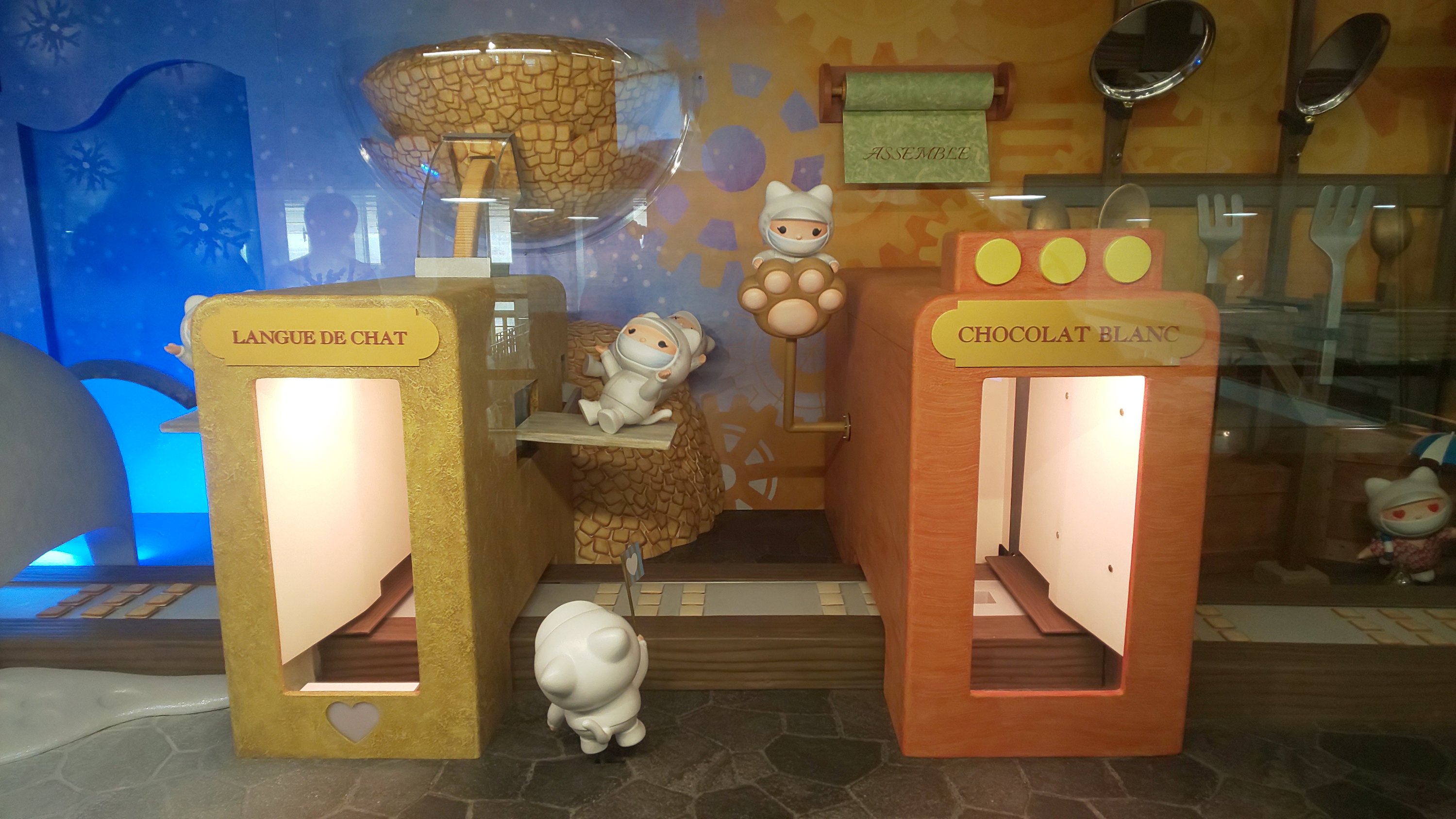 一番シンプルな工場を見学するファクトリーコースを選択して600円です。白猫ちゃんが白い恋人が出来るまでを再現してくれてます。