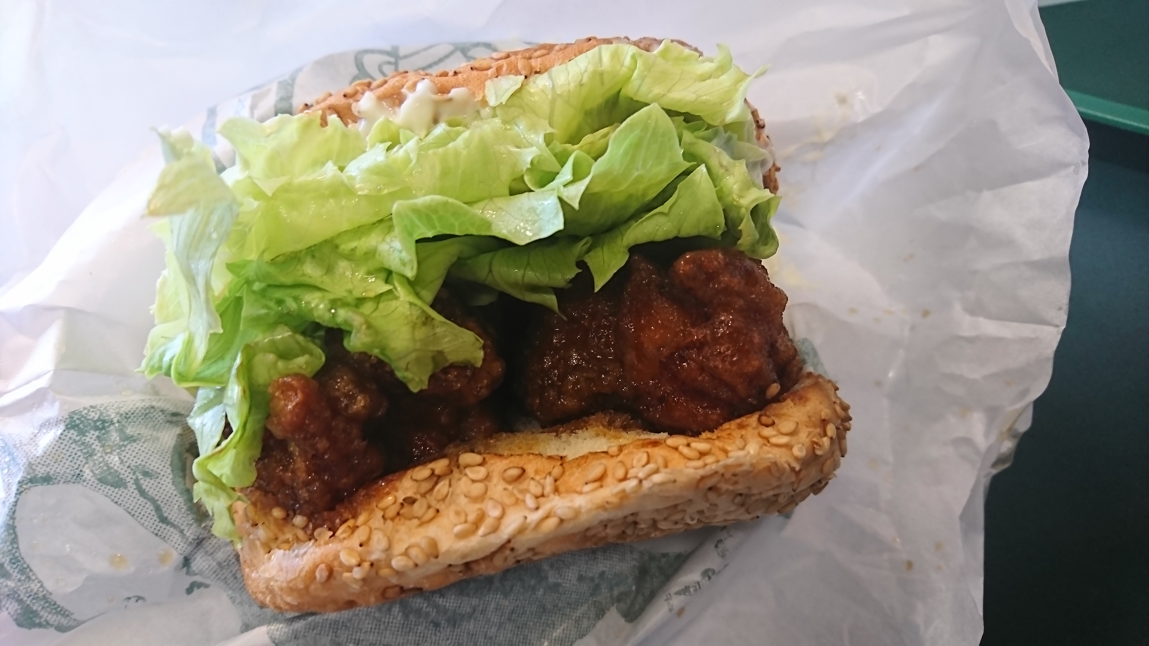 全国のチェーン店も真似してほしい。こっちは照り焼きバーガー。パティが厚くてジューシーです。