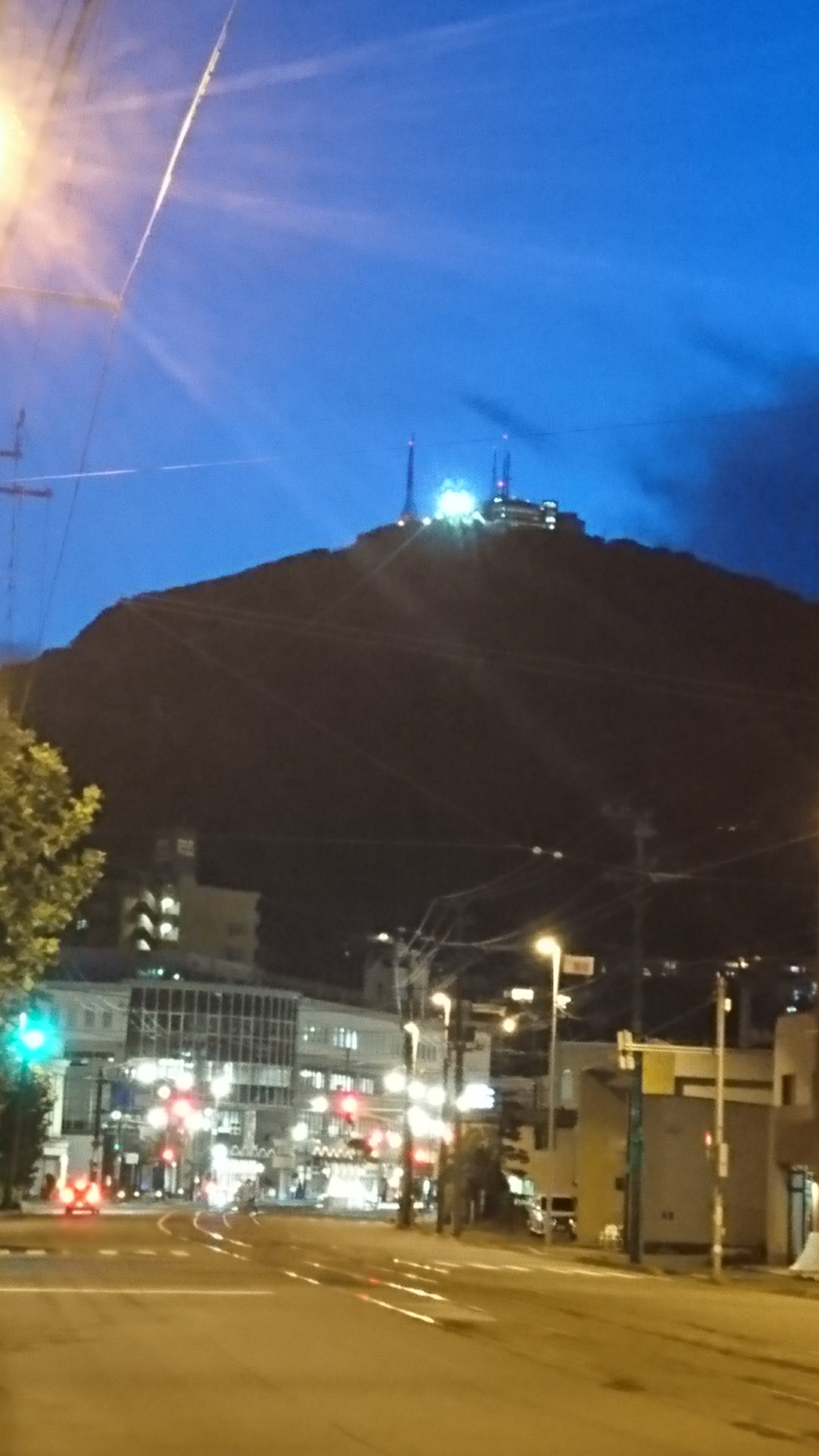 遠くから見ると、山の頂上に展望台の建物の光があって、それがUFOっぽい。