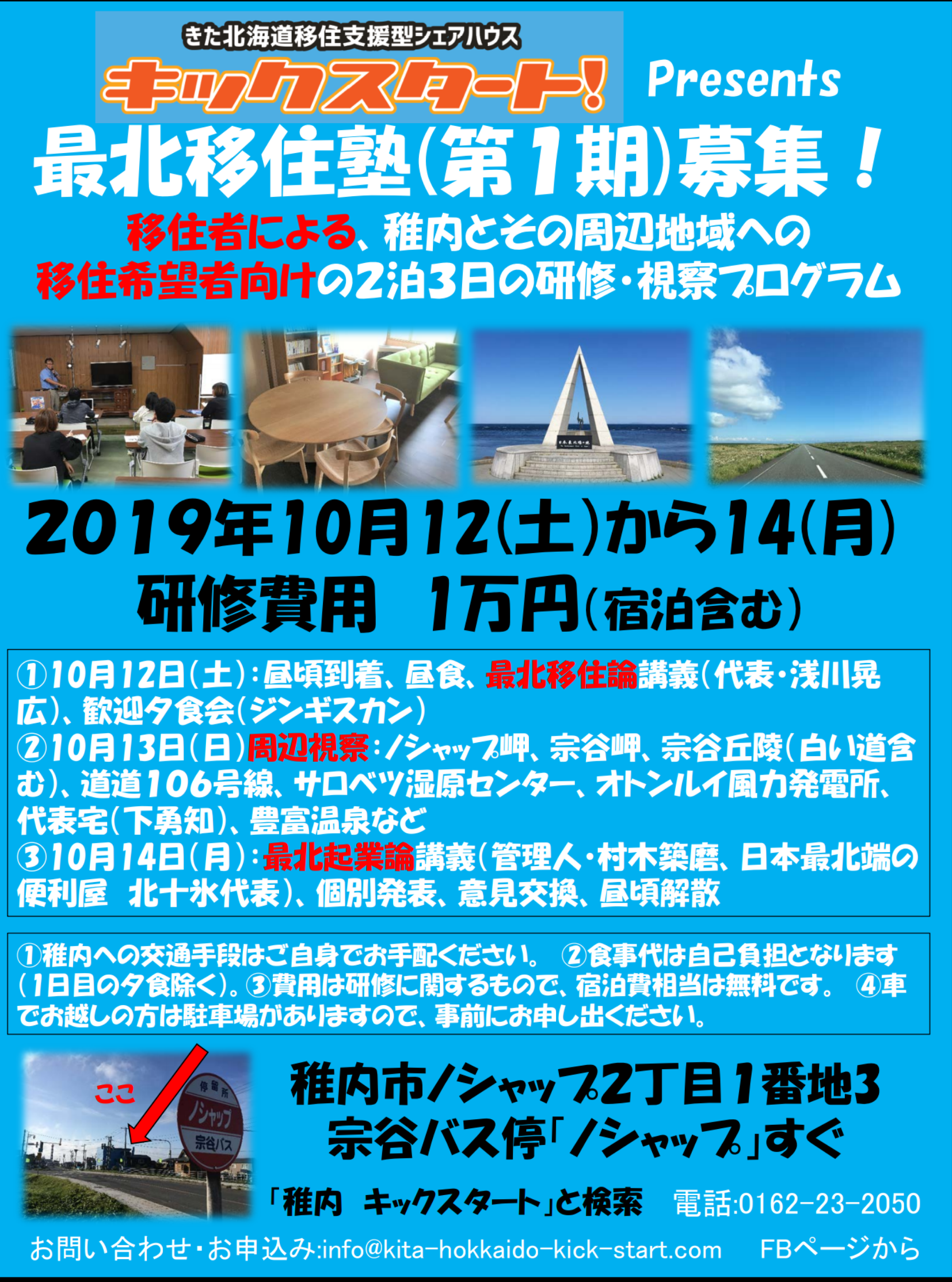 きた北海道移住支援型シェアハウス『キックスタート』様よりお知らせです。