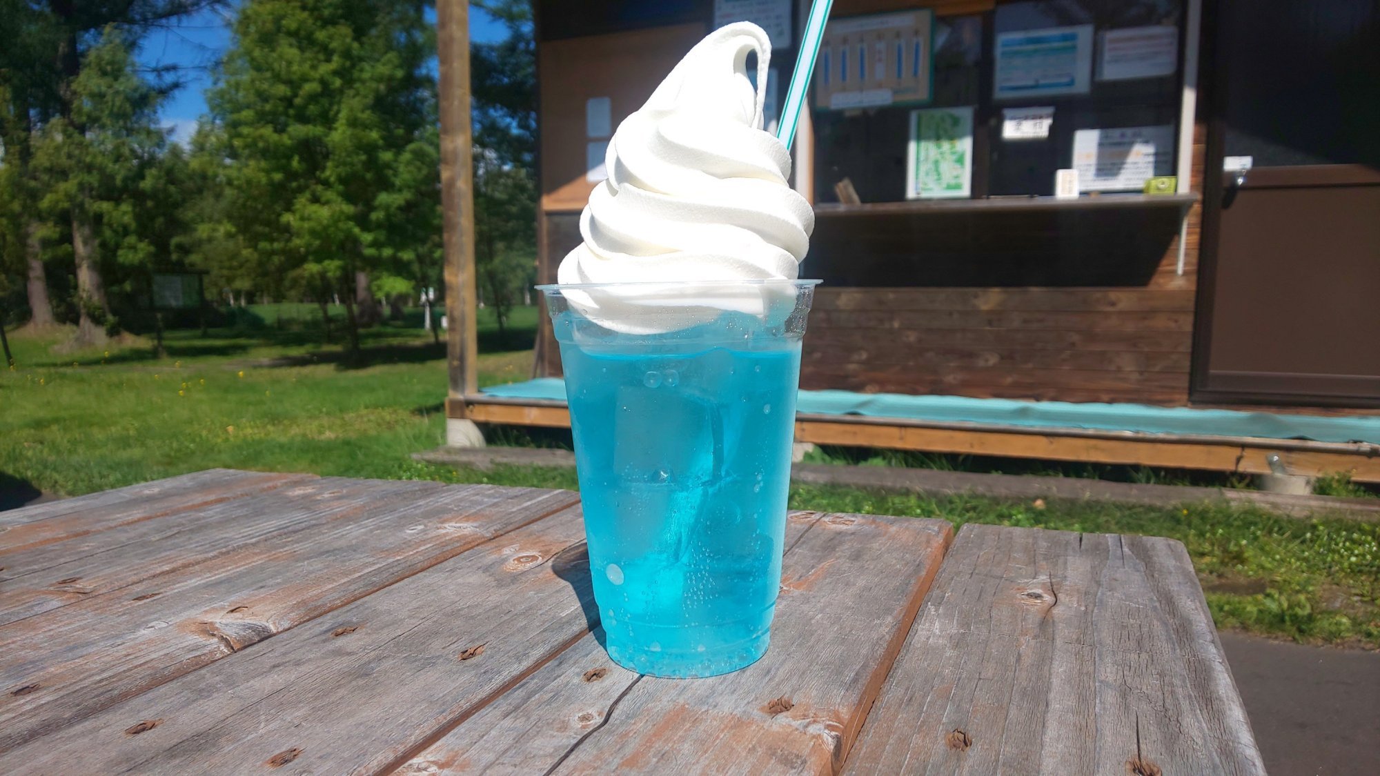 観光名所『青い池』をモチーフにしたソフトクリーム。