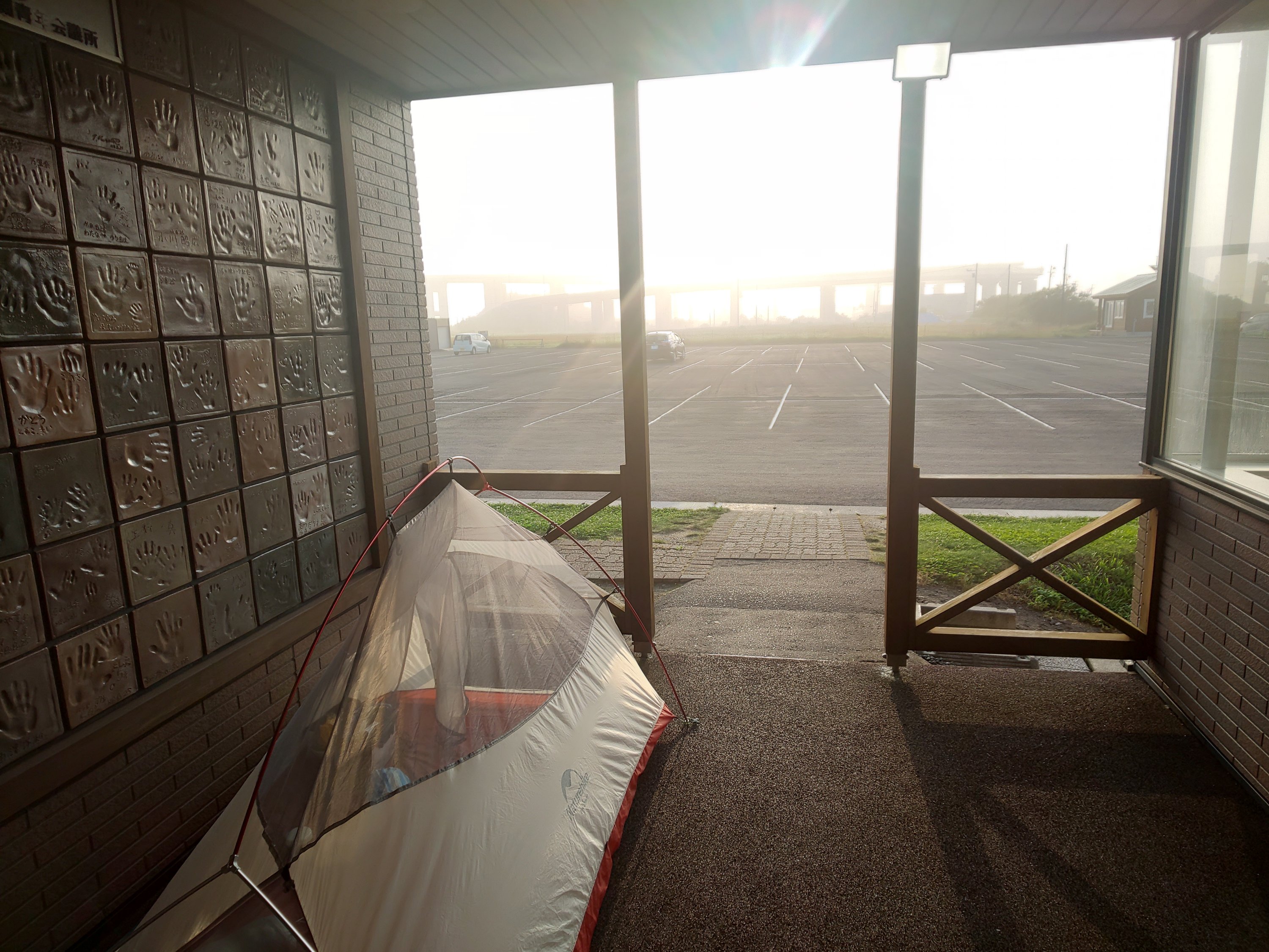 道の駅みたら室蘭にて起床。おはようございます。起きて支度をします。