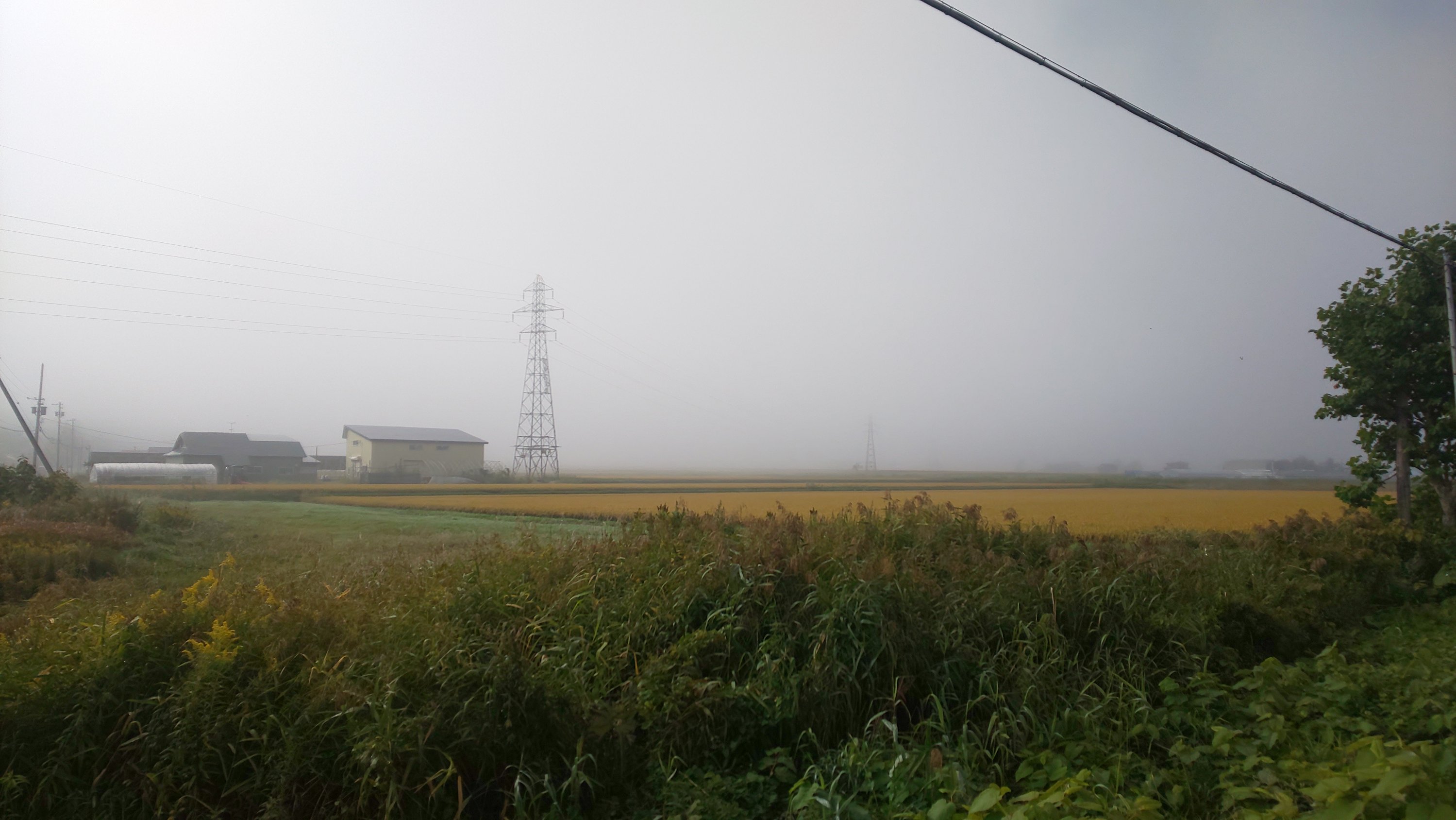 朝起きても霧がすげ-。