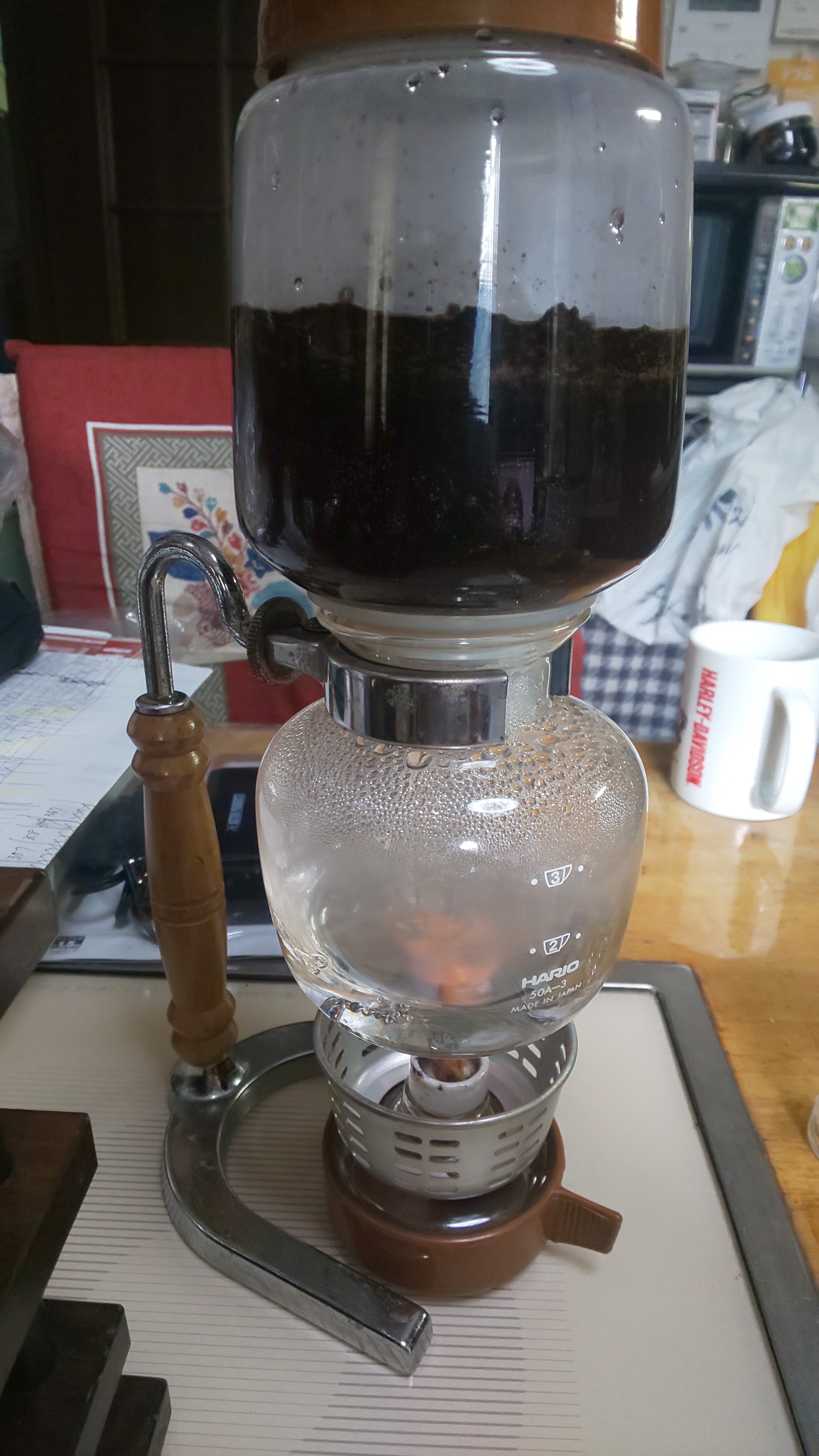 あとはアルコールランプをとって冷ますと珈琲が下の器に落ちてくるって感じです。