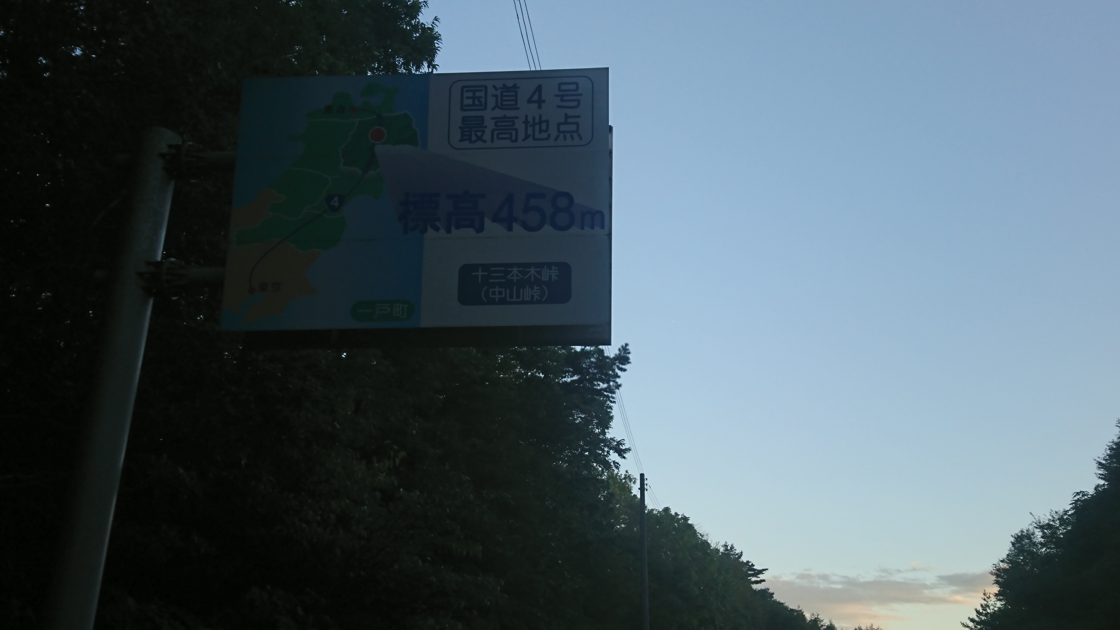 一戸を過ぎてまた進んでいると、青森県から東京まで続いている国道4号のなかで1番高い地点に到着した。