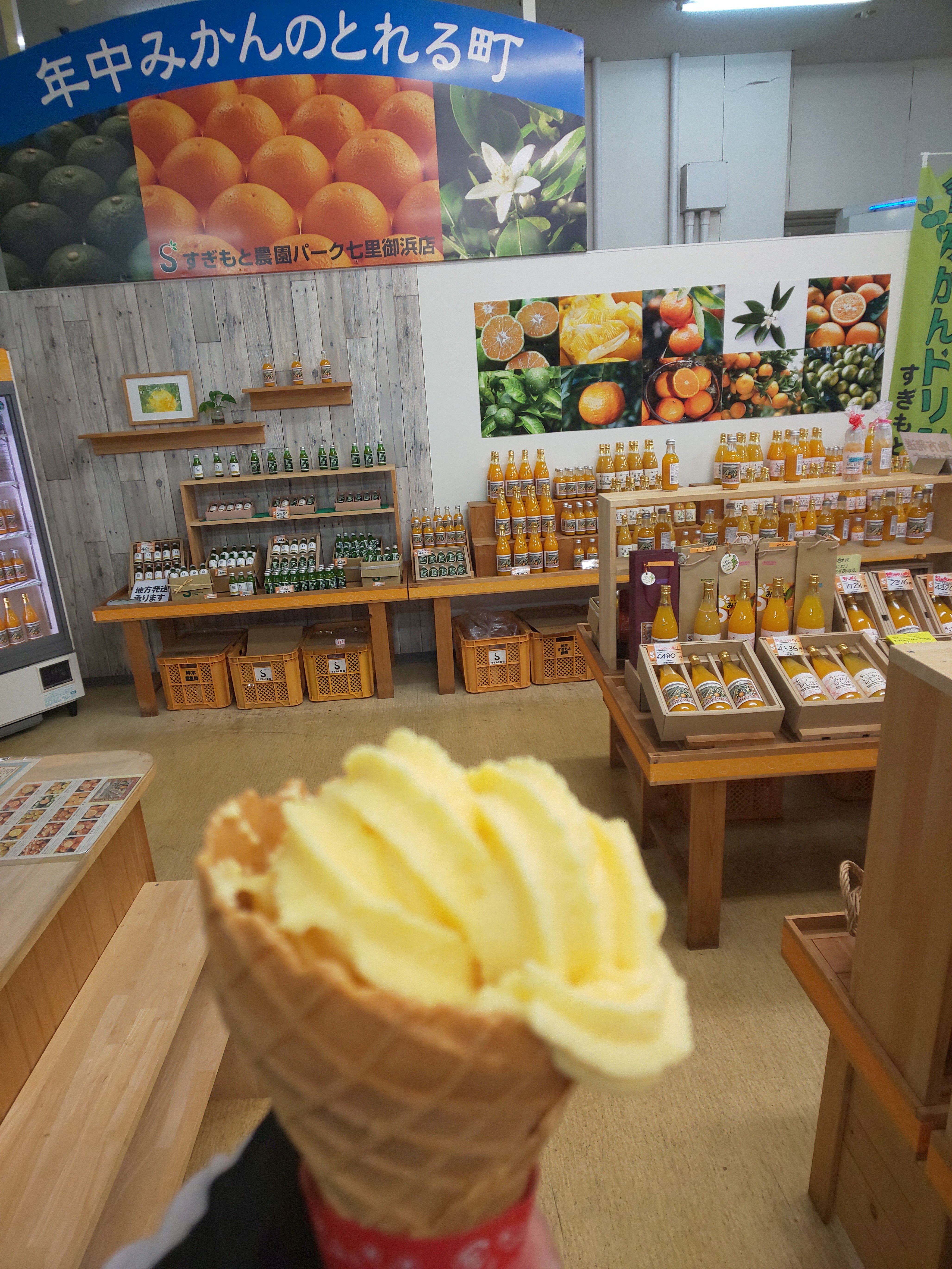 su_box title=”今日のソフトクリーム” style=”bubbles” box_color=”#b5c1f4″ title_color=”#1119af” radius=”5″]七里御浜のみかんソフトクリーム[/su_box]