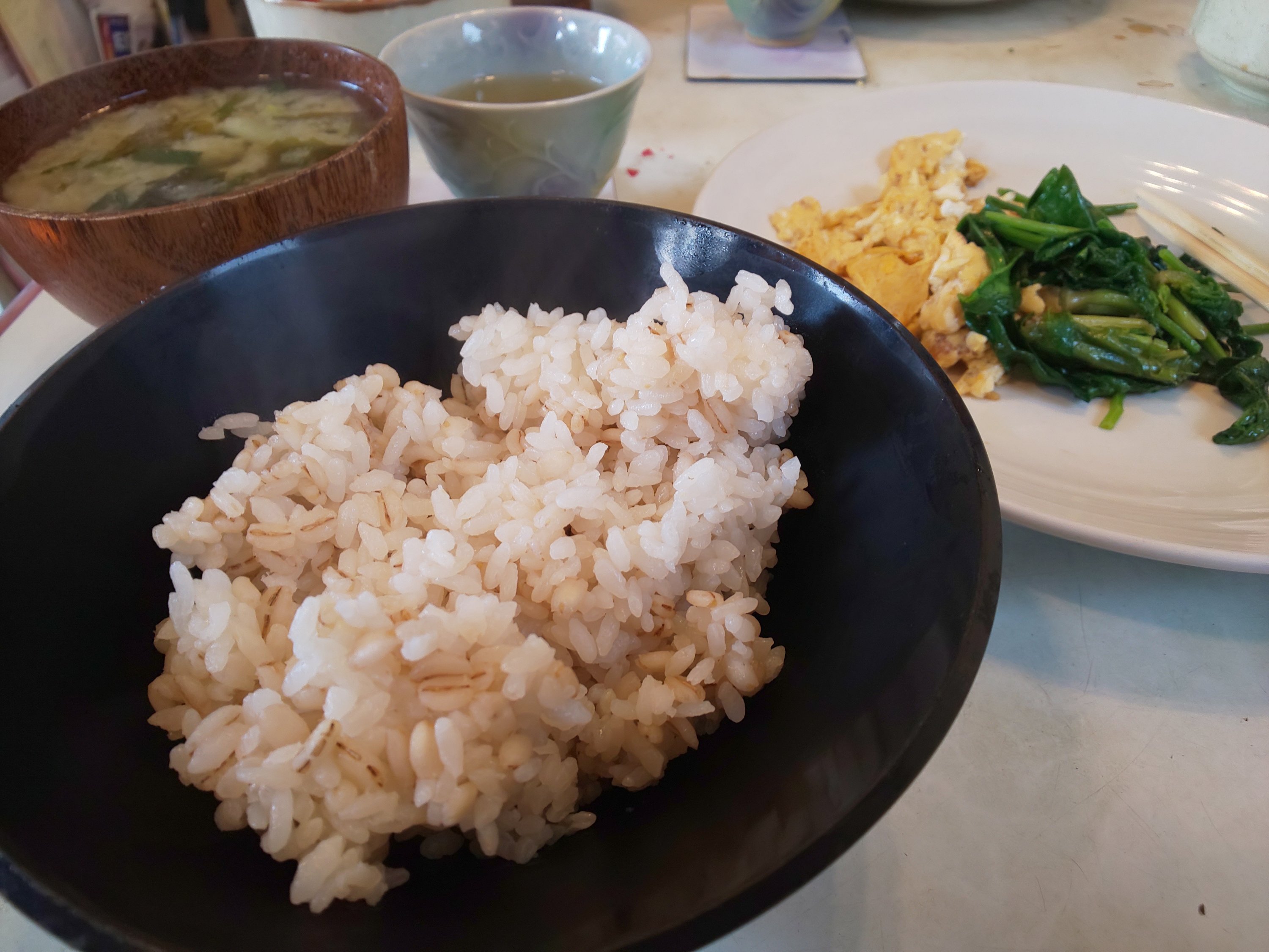 昨日のおじさんが出てきて、朝御飯を頂くことになる。特製のご飯は寒天を入れてきてカロリー減らしている。特製の味噌汁はタニタの減塩味噌を使っているから多く使っても塩辛くならない。などなど。おじさんと2人で朝御飯を食べたのだが、おじさんの家族の話や、なんやかんやおじさんの教えなどを聞いてて1時間以上が過ぎたと思う。