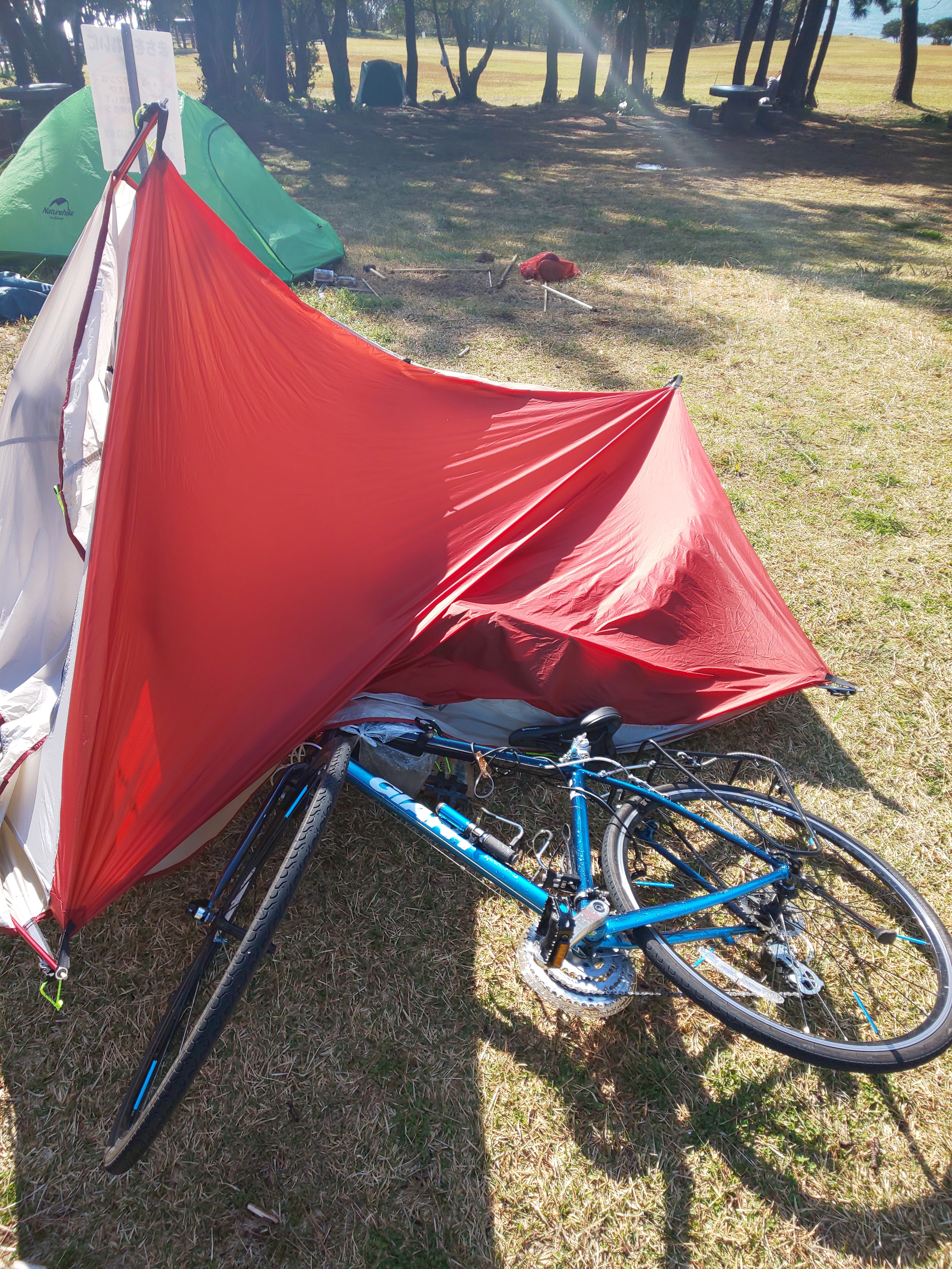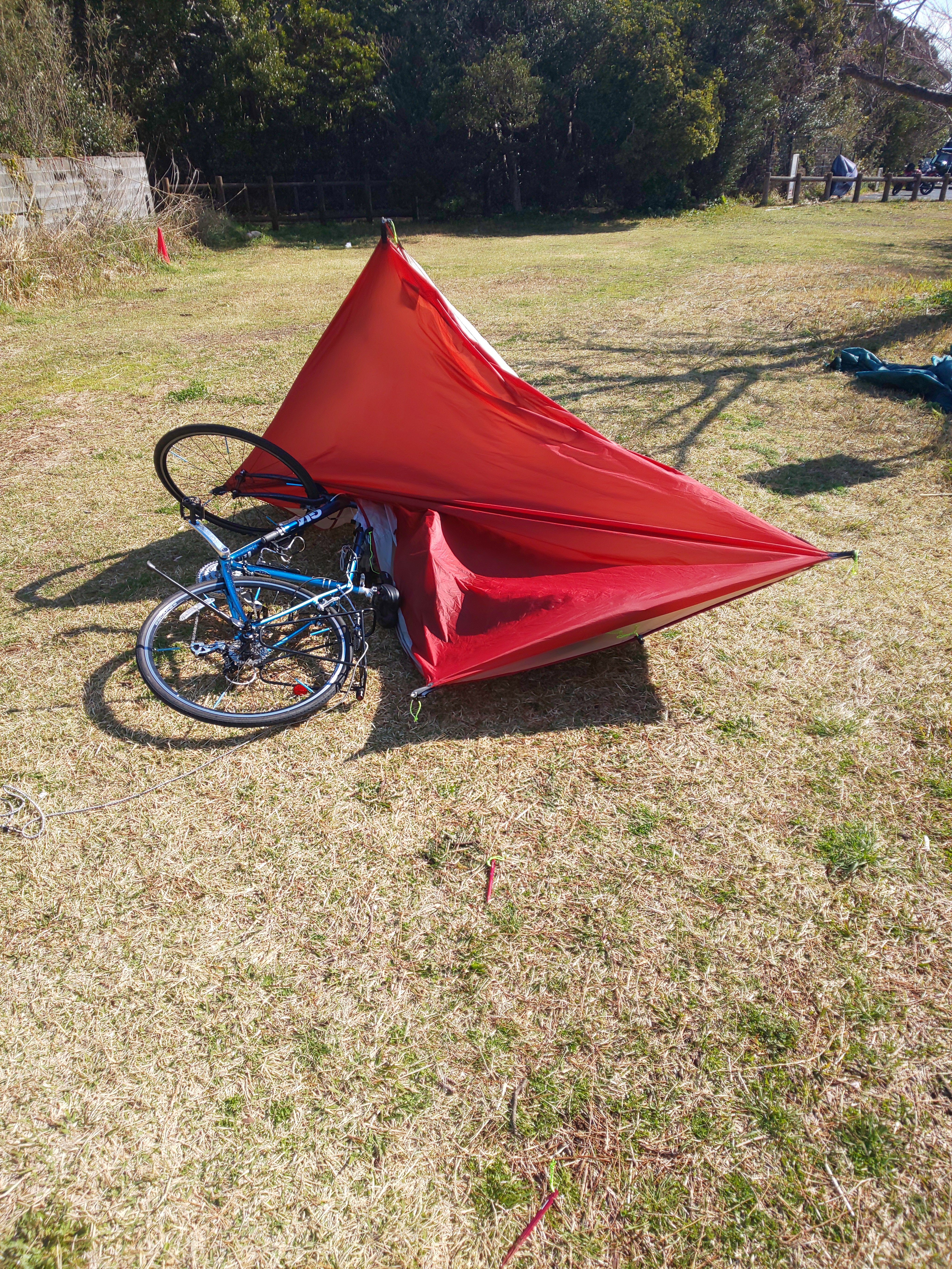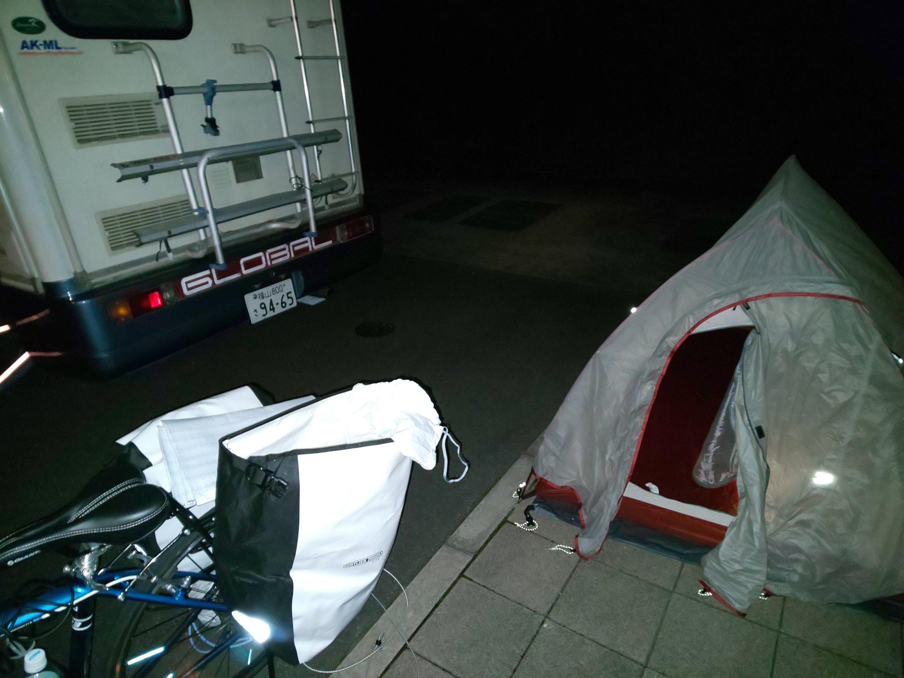 その人のキャンピングカーの後ろでテントを張り、寝ることにする。