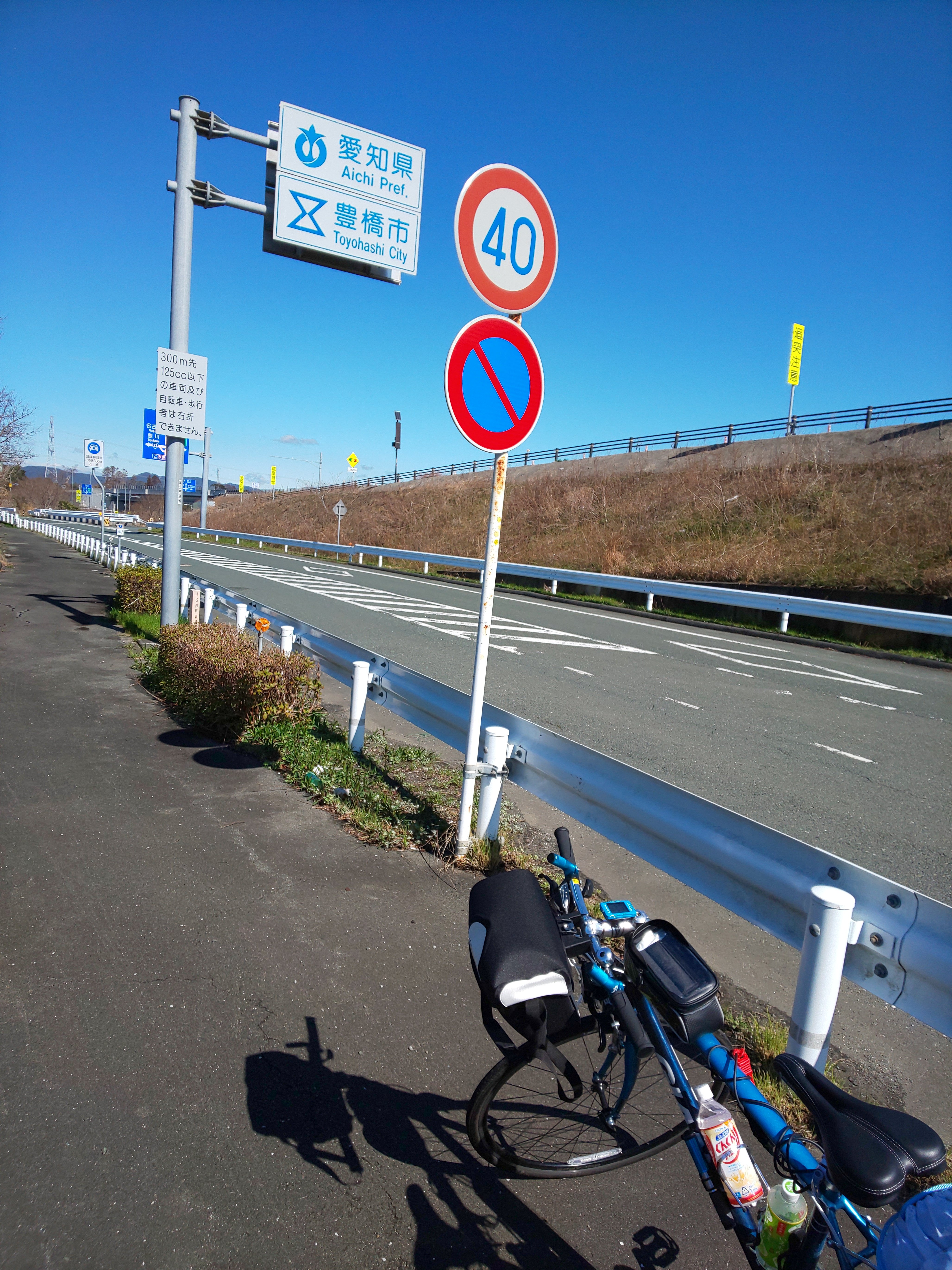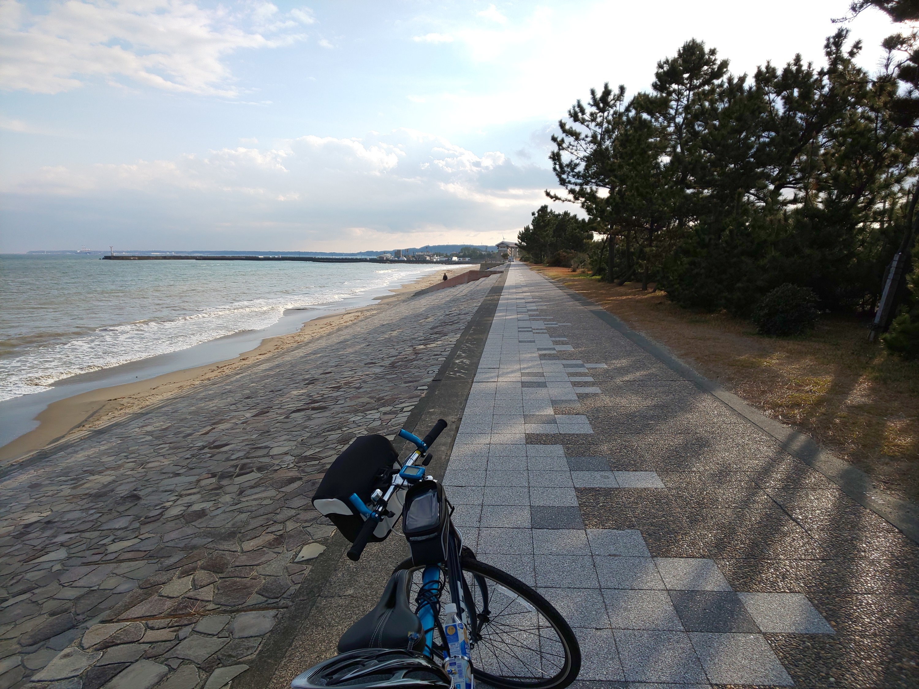 しばらく景色を堪能し、浜松に向かうことに。150号線と太平洋岸自転車道を交互に走っていき、小腹も空いてきたので太平洋岸自転車道で昨日の食パンの残りを食べてました。