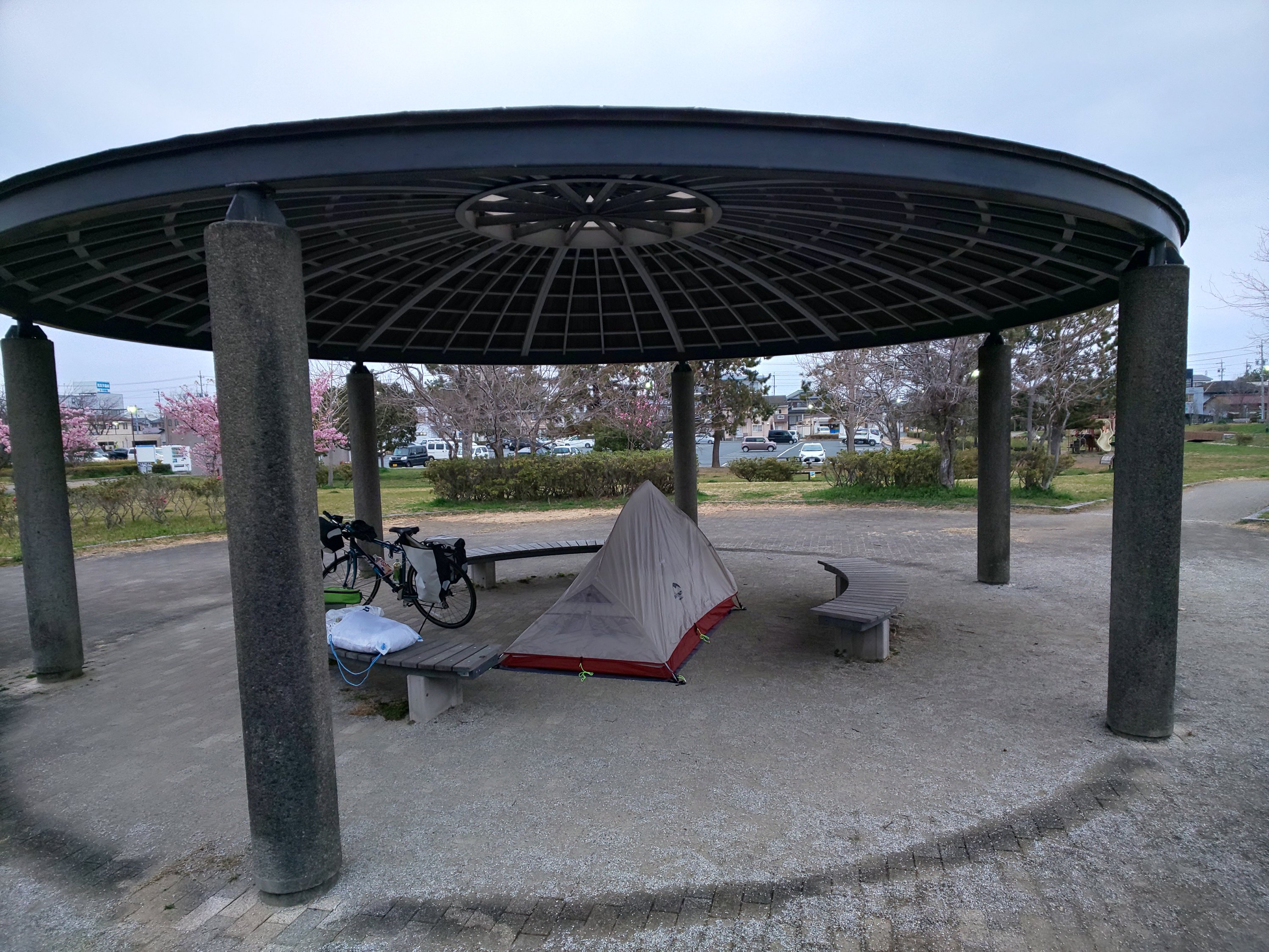 自転車で走っていて思ったのが都心はやはりテントで泊まるのは辞めようと思ってました。どこに自転車を駐輪したらいいかもわからないのとサイドバックを盗まれそうですごく怖いので。