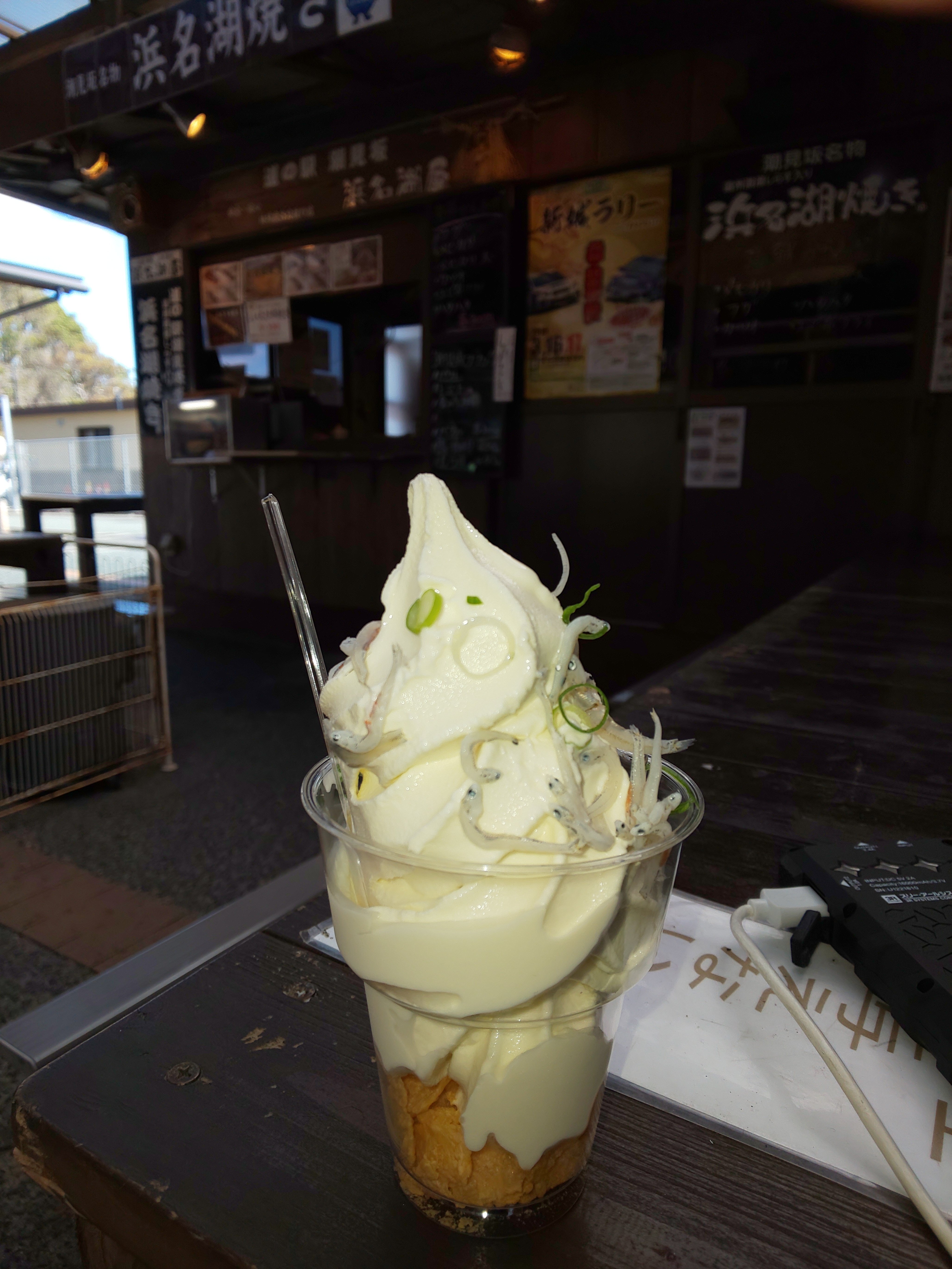 潮見駅のしらすソフトクリーム(350円)
