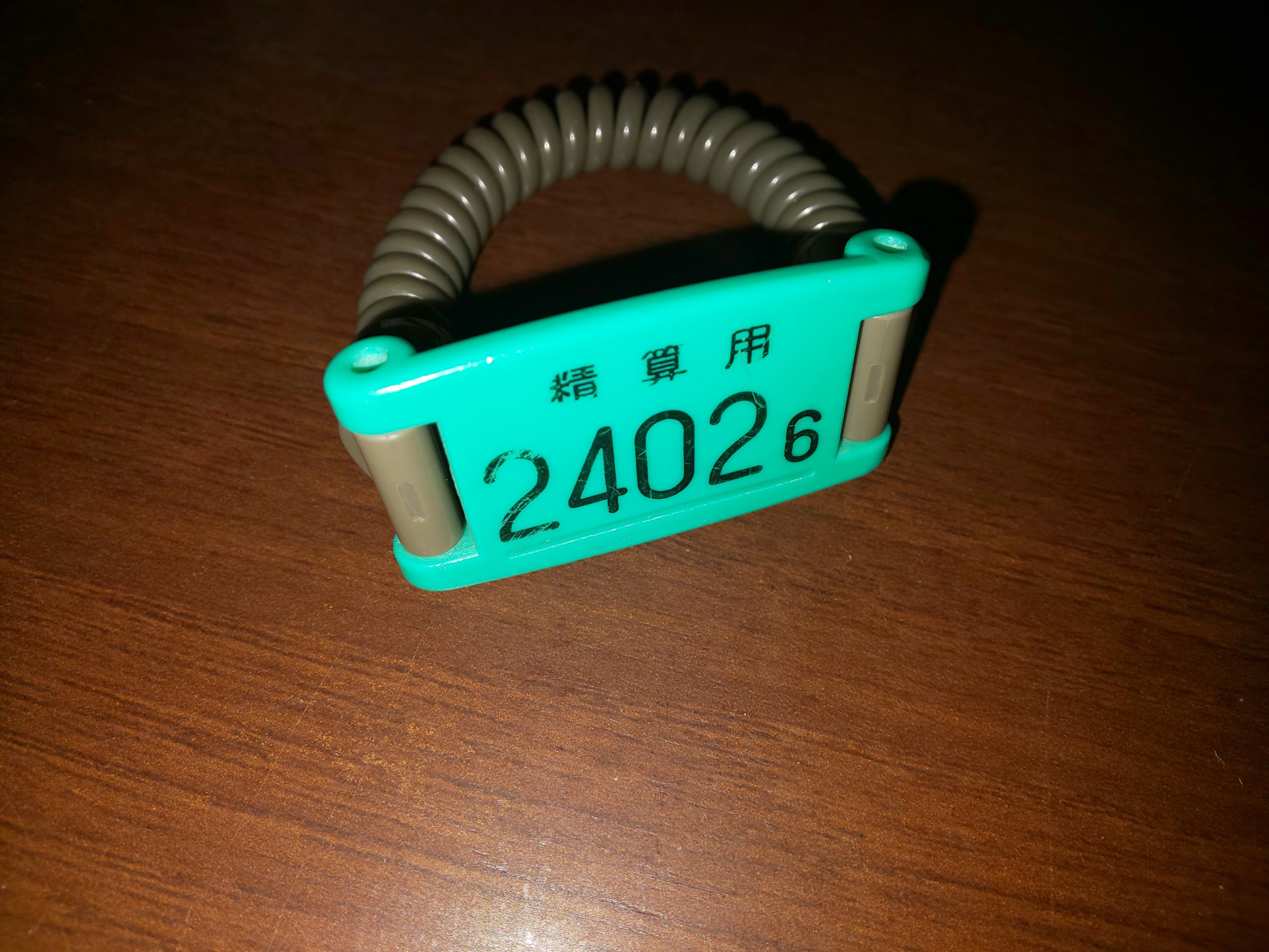 取り合えず花粉を落とすため、レジにて入浴料を払い来場。レジでこのバンドを手にかけてもらいこれの番号で他の施設も利用することができ、後精算で払うとのこと。お金を持ち歩かなくていいため便利です。