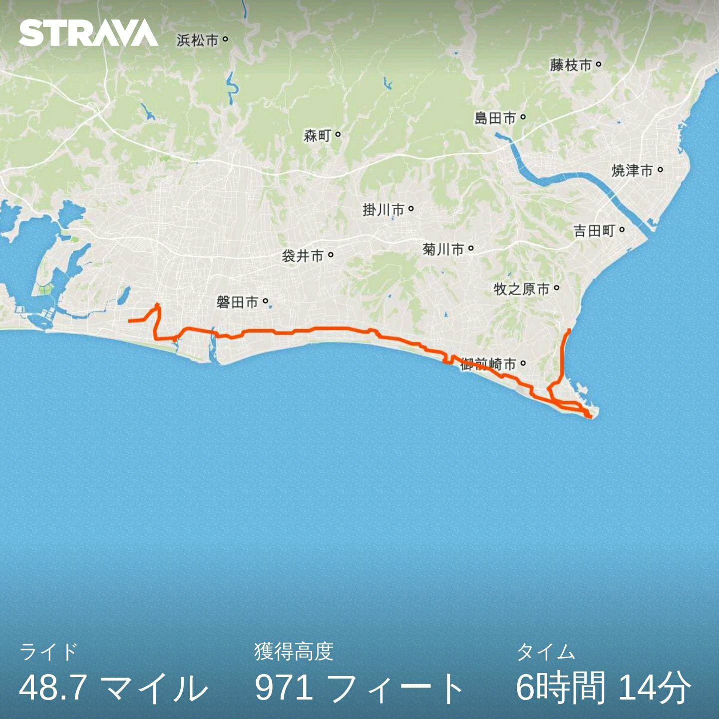 (海岸線沿いに行くルートを通っていたので、直線距離の80キロからは相当大回りのルートになってました。)