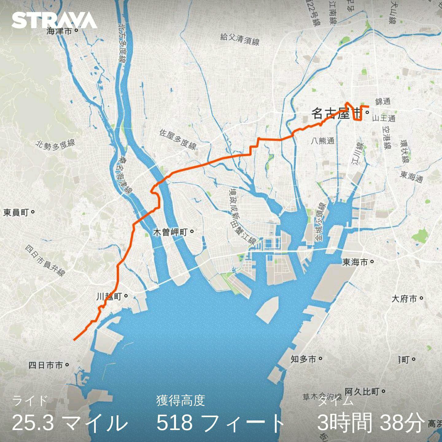 名古屋に近づくにつれ車線は渋滞してきて自転車で車を抜かすことができ、モチベーションの維持も簡単であった。