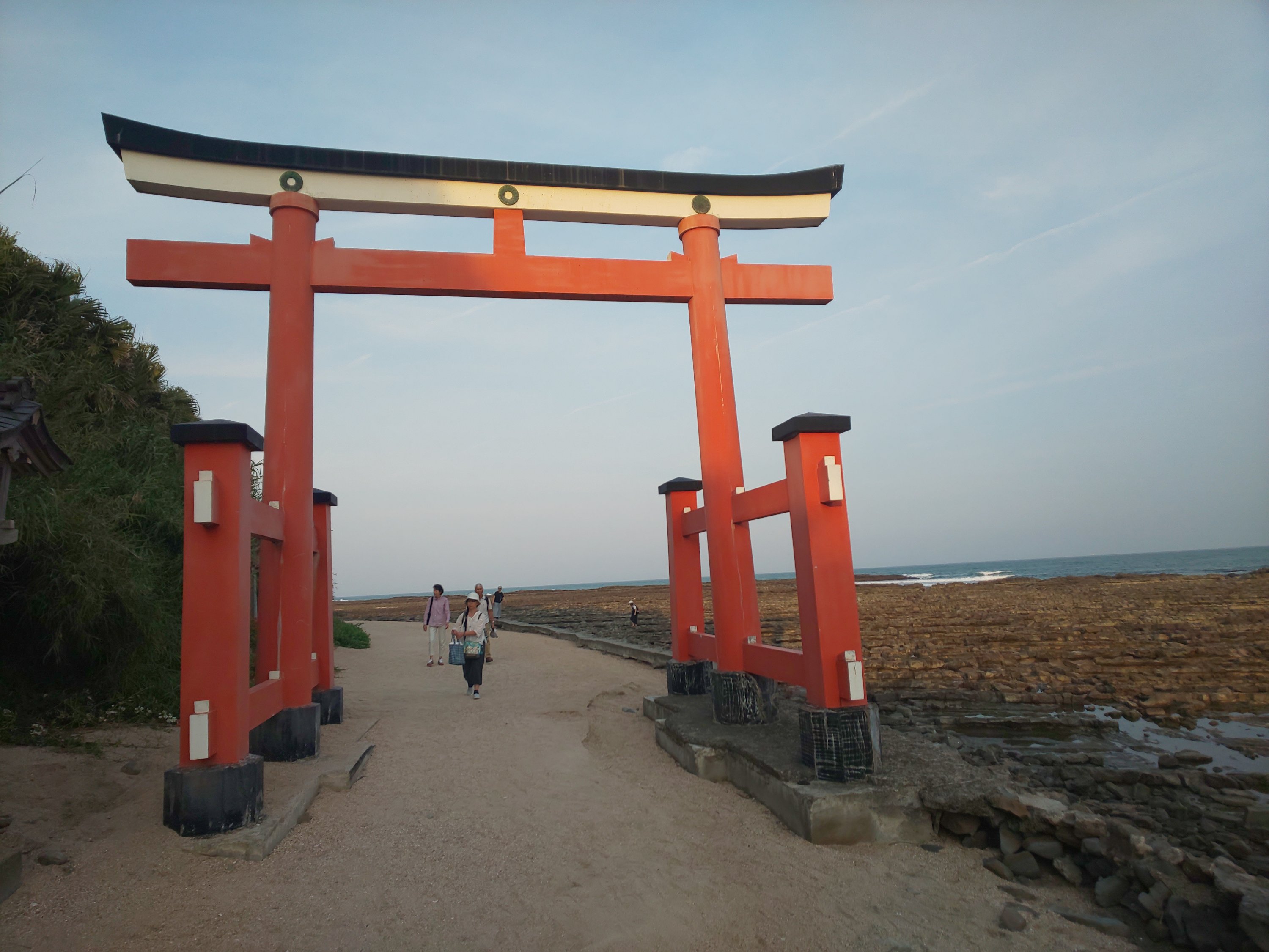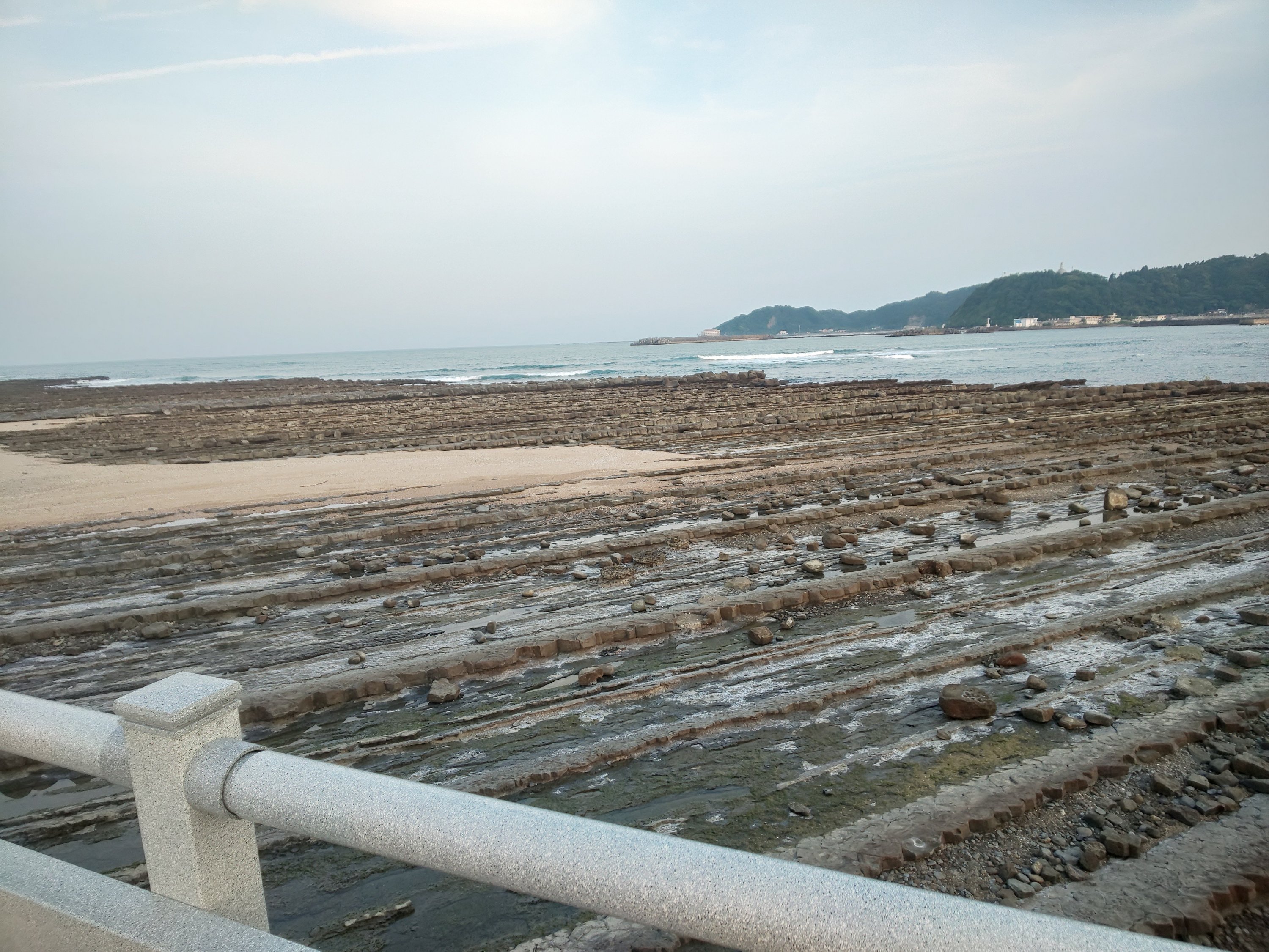 神社は魅力がよくわからなかったですが、海岸線沿い『鬼の洗濯板』という奇岩がありました。階段上に地層が隆起していてこっちは見るのが楽しいです。(小並感)