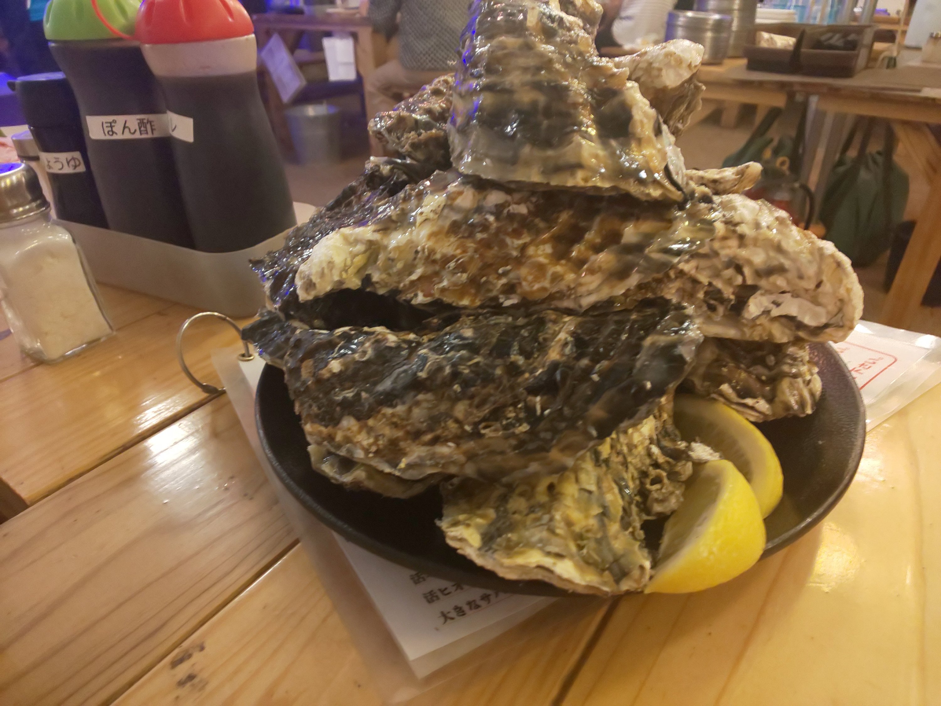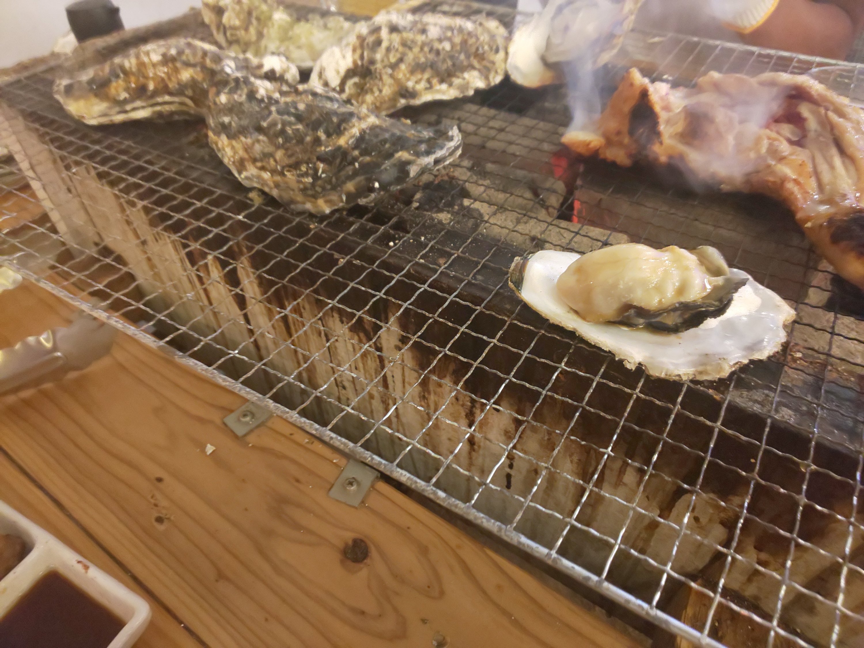 しかもお夕飯は近くの浜焼バーベキューで牡蠣パーティーをしました!ガチ両刀君も私もこのような牡蠣を自分で焼いて食べるスタイルは初めてで、牡蠣は甘くみると痛恨の一撃(食中毒)をしてくるかもしれないので恐る恐る焼いていきましたよ。