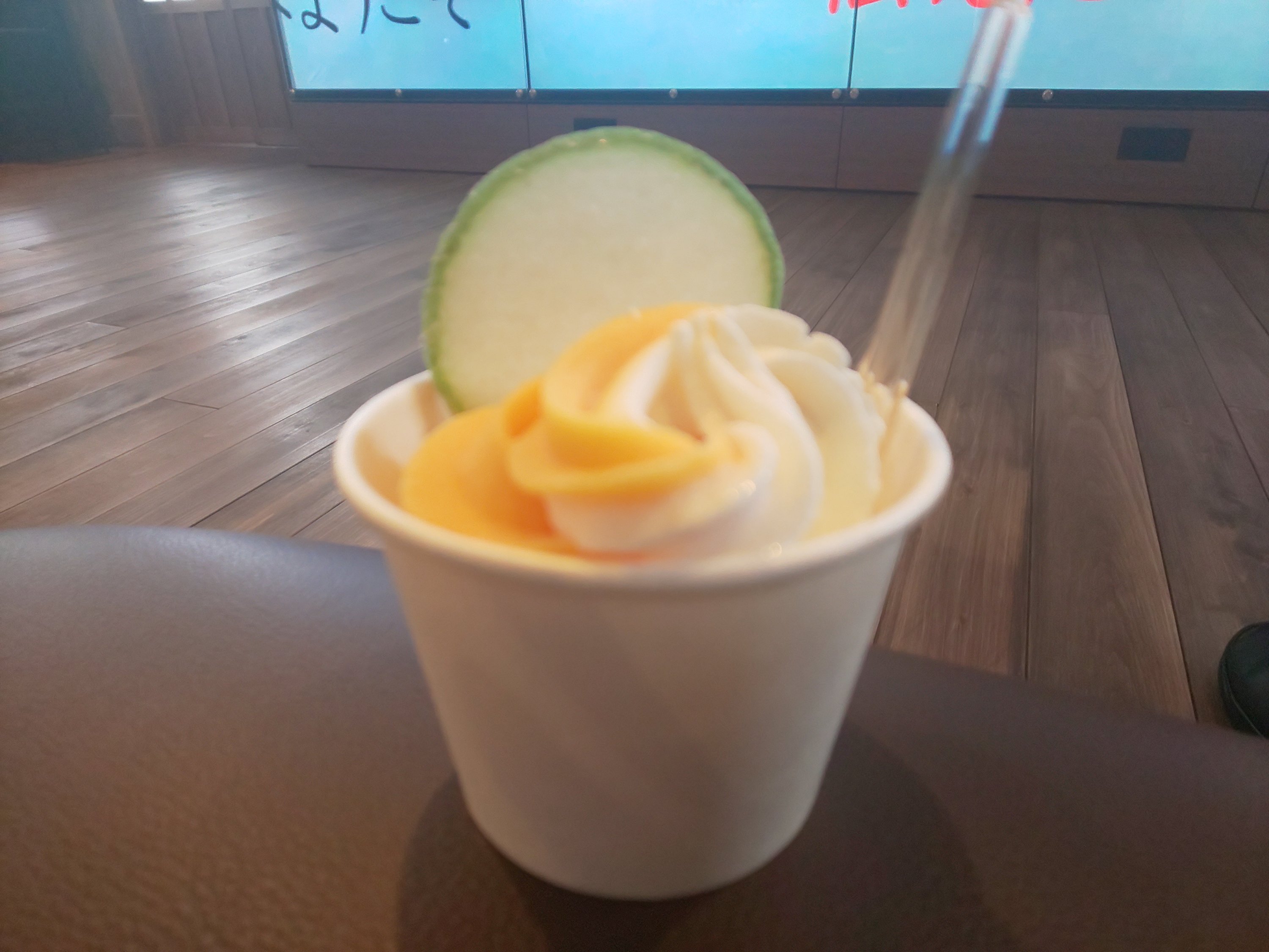 みかんとヨーグルトのミックスのソフトアイス。ソフトクリームとは違うのかな?ミルク感がないからアイスなのかな?