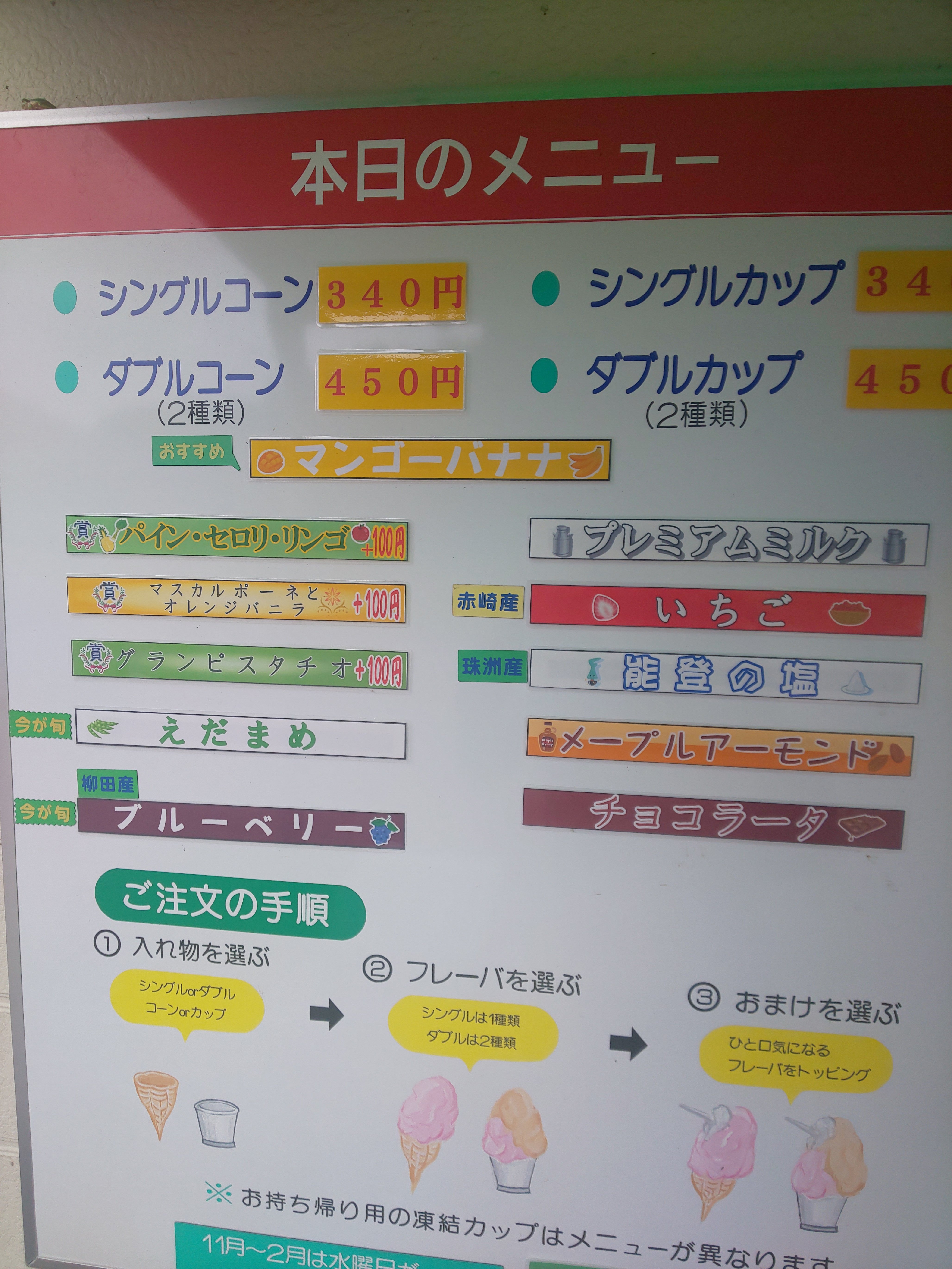 何にしようか迷いましたが、受賞したマスカルポーネとオレンジバニラとグランピスタチオの2種類食べました。