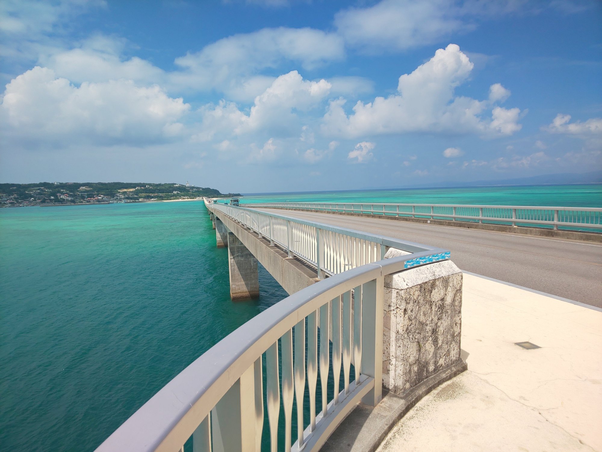 青い空、青い海に架かる大橋。