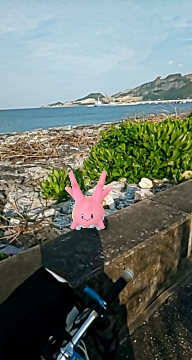 朝に丁度LINEで知り合いのかたから、『ポケモンGO』で沖縄にしかいないサニーゴを捕まえて欲しいとのリクエストがあった。そんなこんなで、サニーゴを探しながら北上をしていた。沖縄らしい珊瑚がモチーフのポケモンです。海岸線を走っていると…