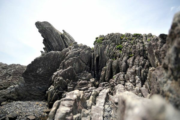 室戸の海岸線を走っているとダイナミックな景色が広がる。あとでわかったのですが、タービダイト層っていうらしいです。