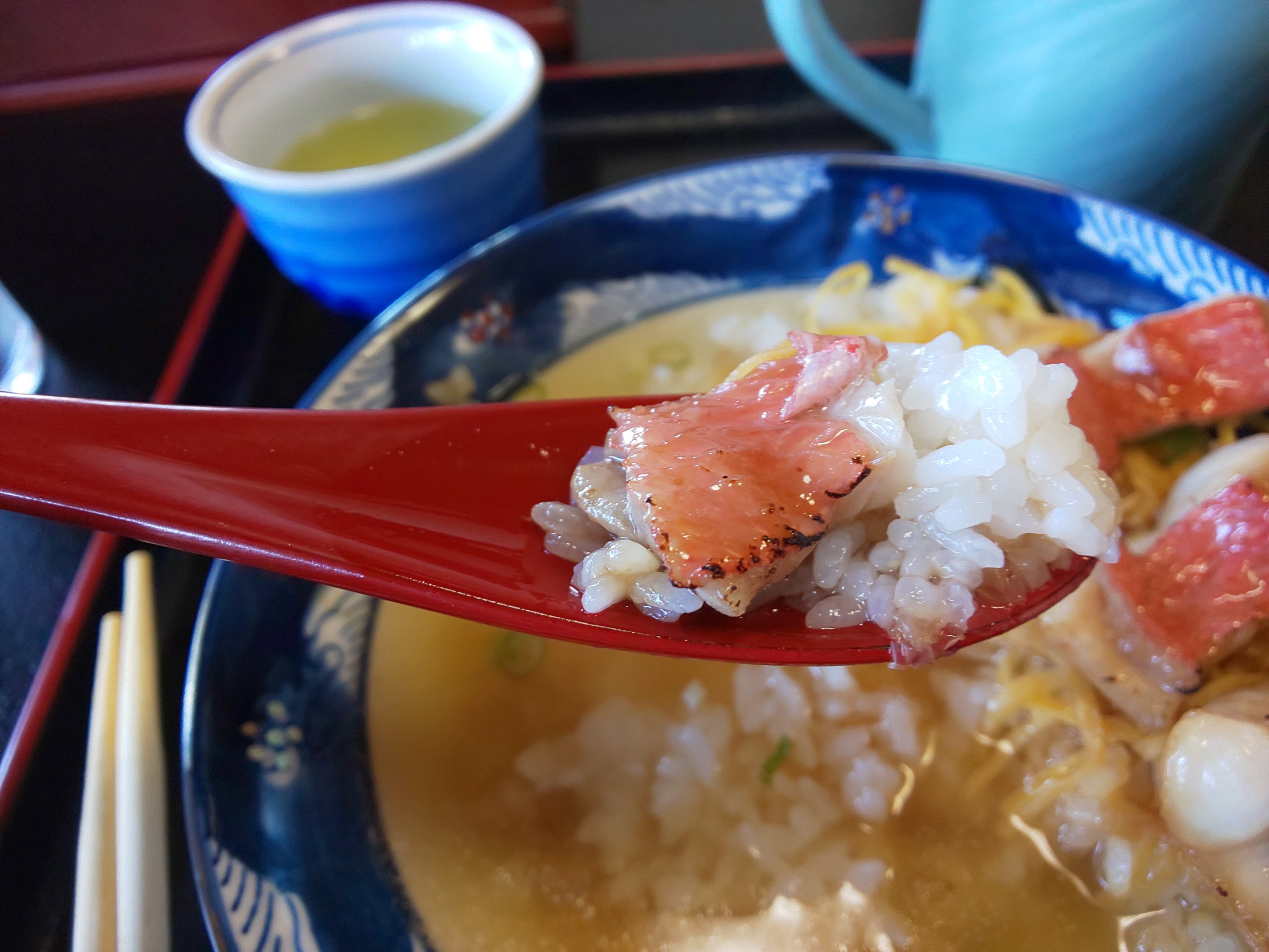 最後はキンメダイの出汁をご飯にかけてお茶漬け風で食べる。ご飯の量が多かったがお茶漬けで食べることで意外にも食べれてしまう。個人的にはお茶漬けにしないでそのままが良かったかもです。