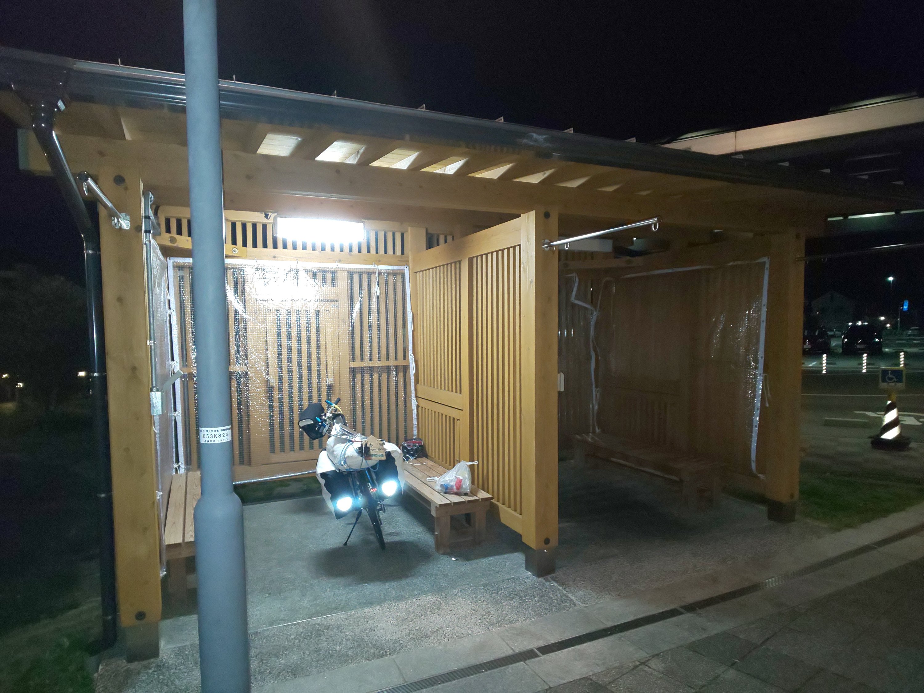 コンビニも休める場所もなく進み続け、夕方にやっと道の駅に着いた。案内所の人にテントを張っていいか確認したところ、敷地内に張るのはダメと言われてしまった。駐車場にも、「長期間の駐車禁止!」とかっていう張り紙があったりしたので厳しいかなぁっと思っていたらやはりそうであった。初めて断られてしまった。現在17時で、次の道の駅までは30キロ以上ある。久々の夜走行となってしまったのだ。