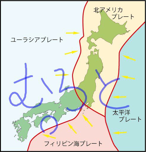 地球も卵みたいに一枚の殻では出来ていなく、ヒビが入ったゆで卵みたいな殻(プレートと呼ぶ)が集まって出来ております。