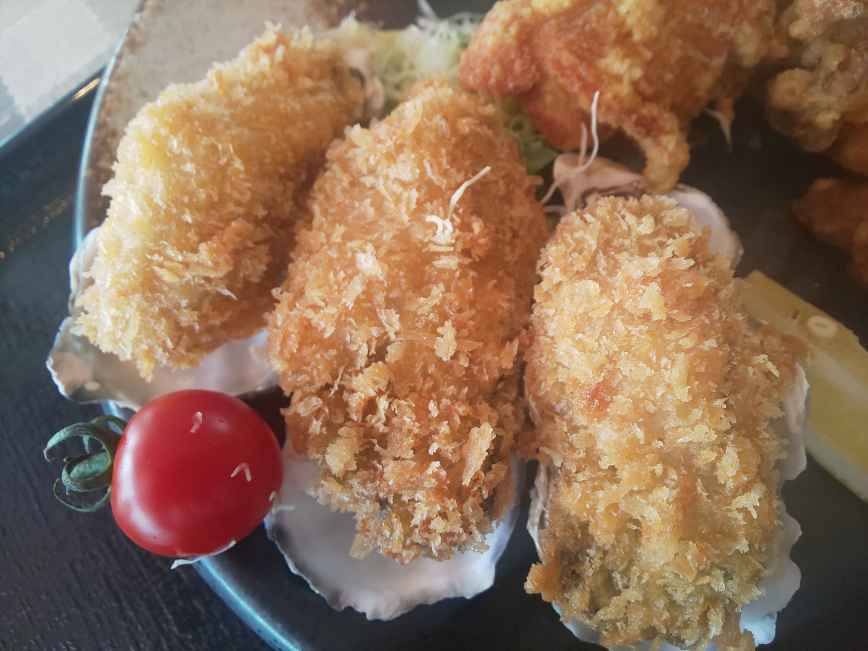 牡蠣のこの大きさね!プチトマトが小さいのではなく牡蠣が大きいのですよ。
