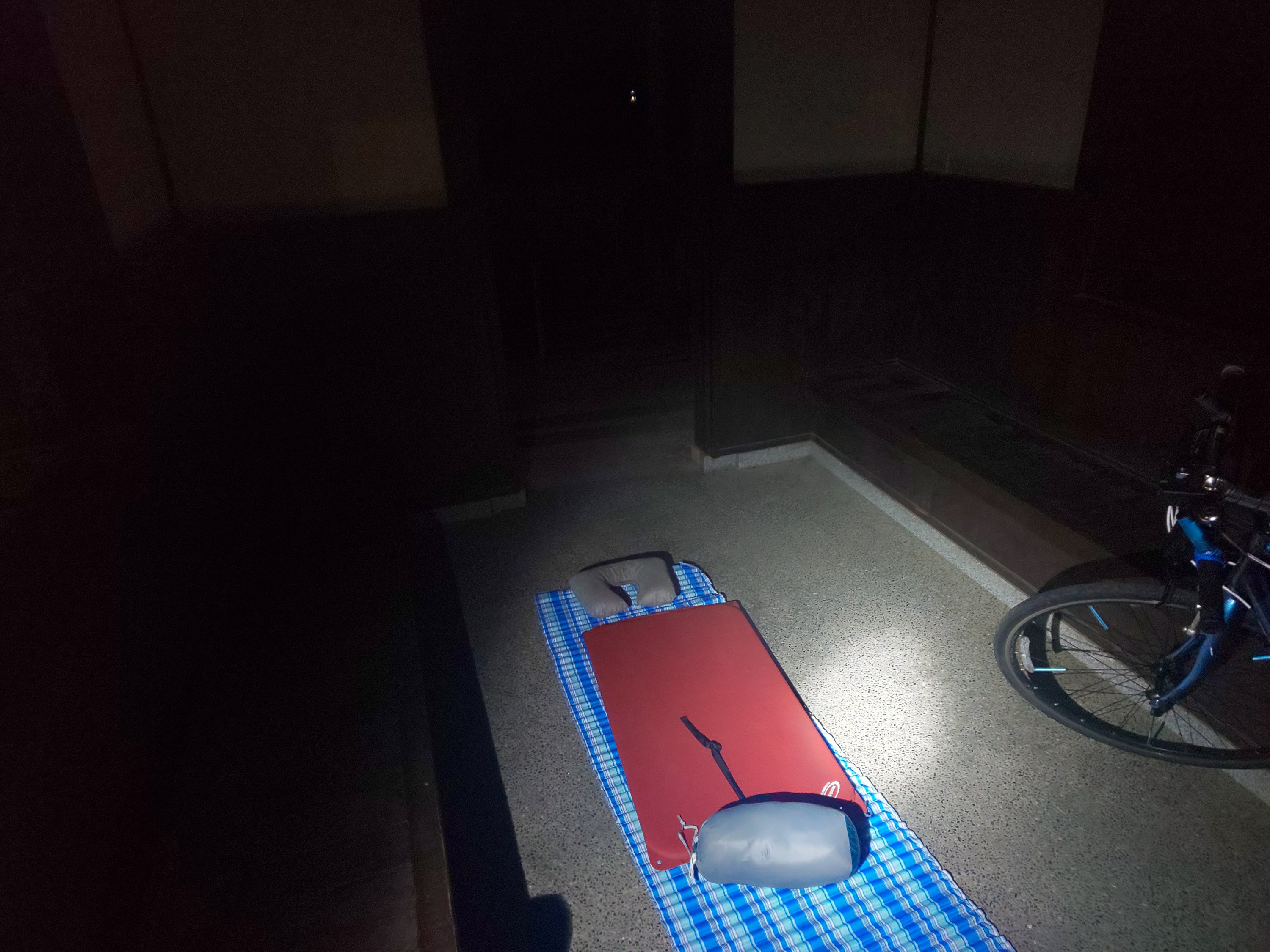 長考した結果、寝床は天橋立の敷地内の東屋にすることにした。