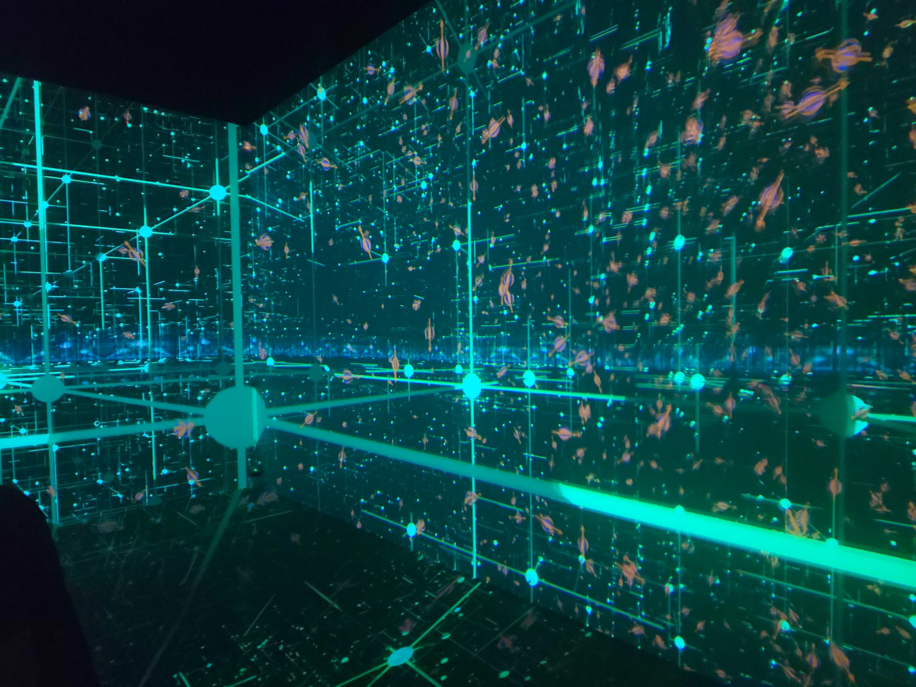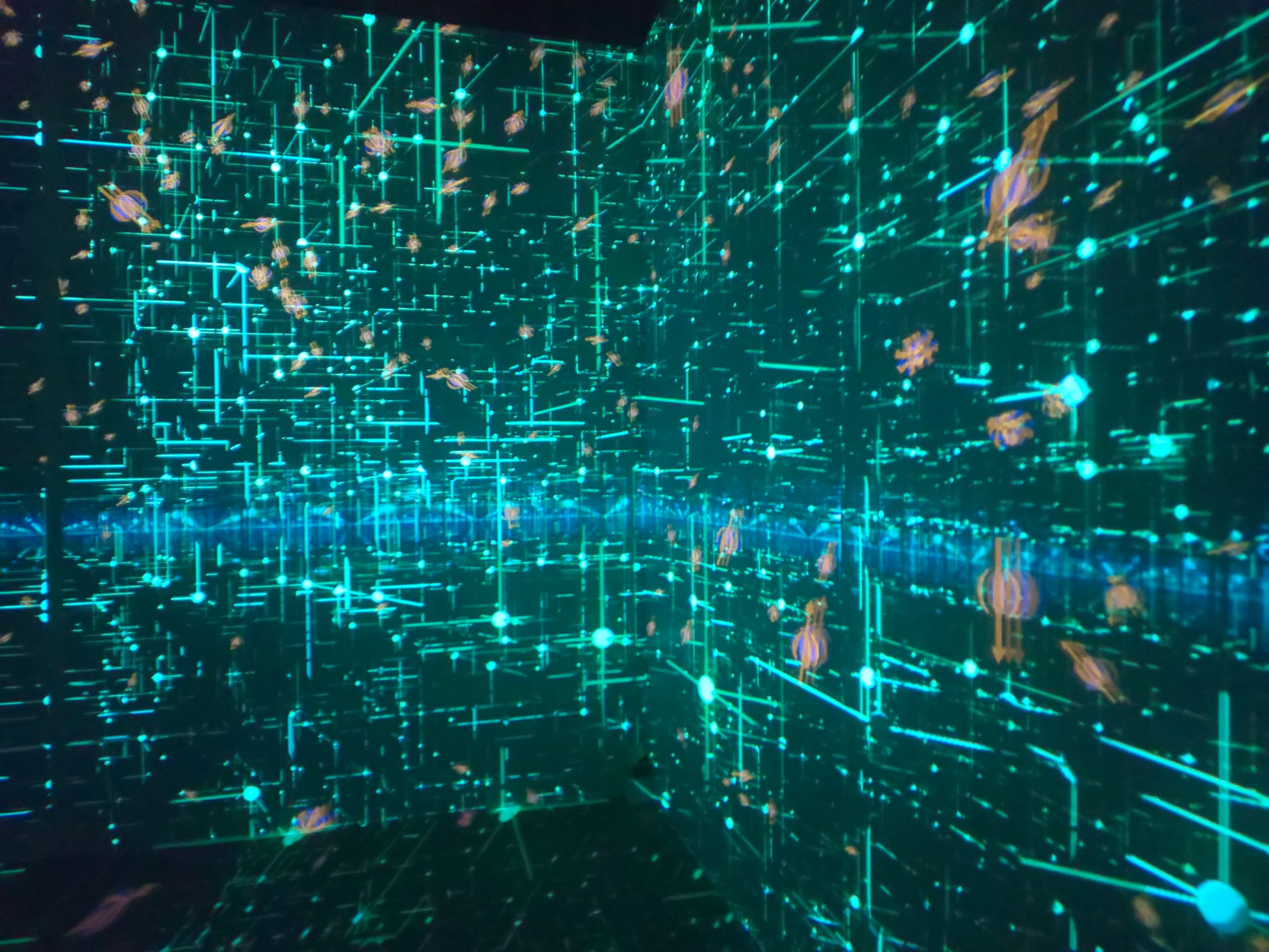 そういう堅苦しい展示内容だけじゃなくて、teamLabとのコラボ展示もあります。teamLabとは、多数のパソコンやプロジェクターを用いてデジタル映像を手掛けている集団です。