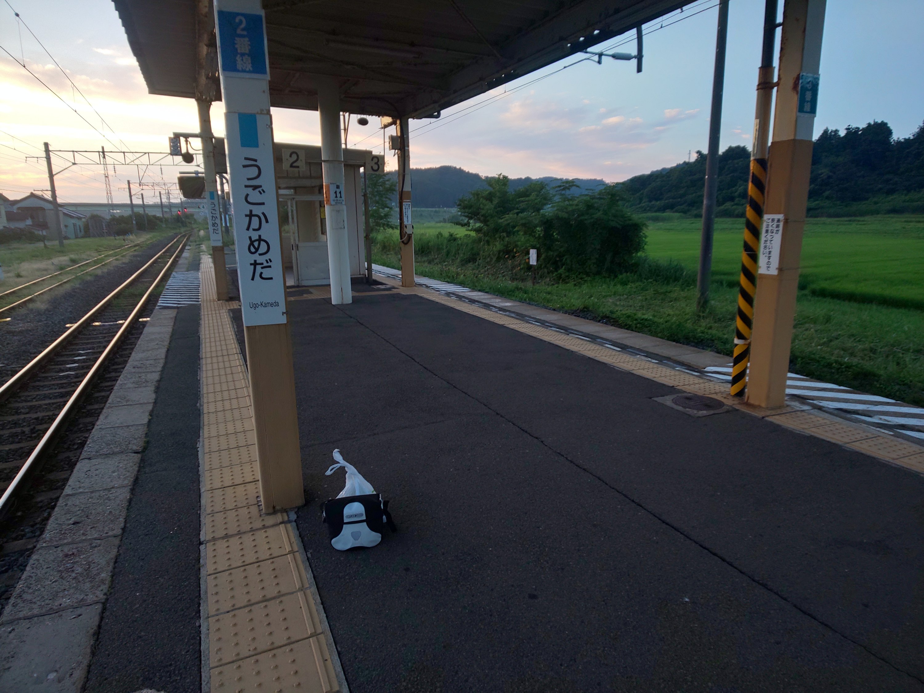 このままでは飲み会が間に合わないので、自転車は最寄り駅のホームに置いて電車で秋田市に向かうことにした。
