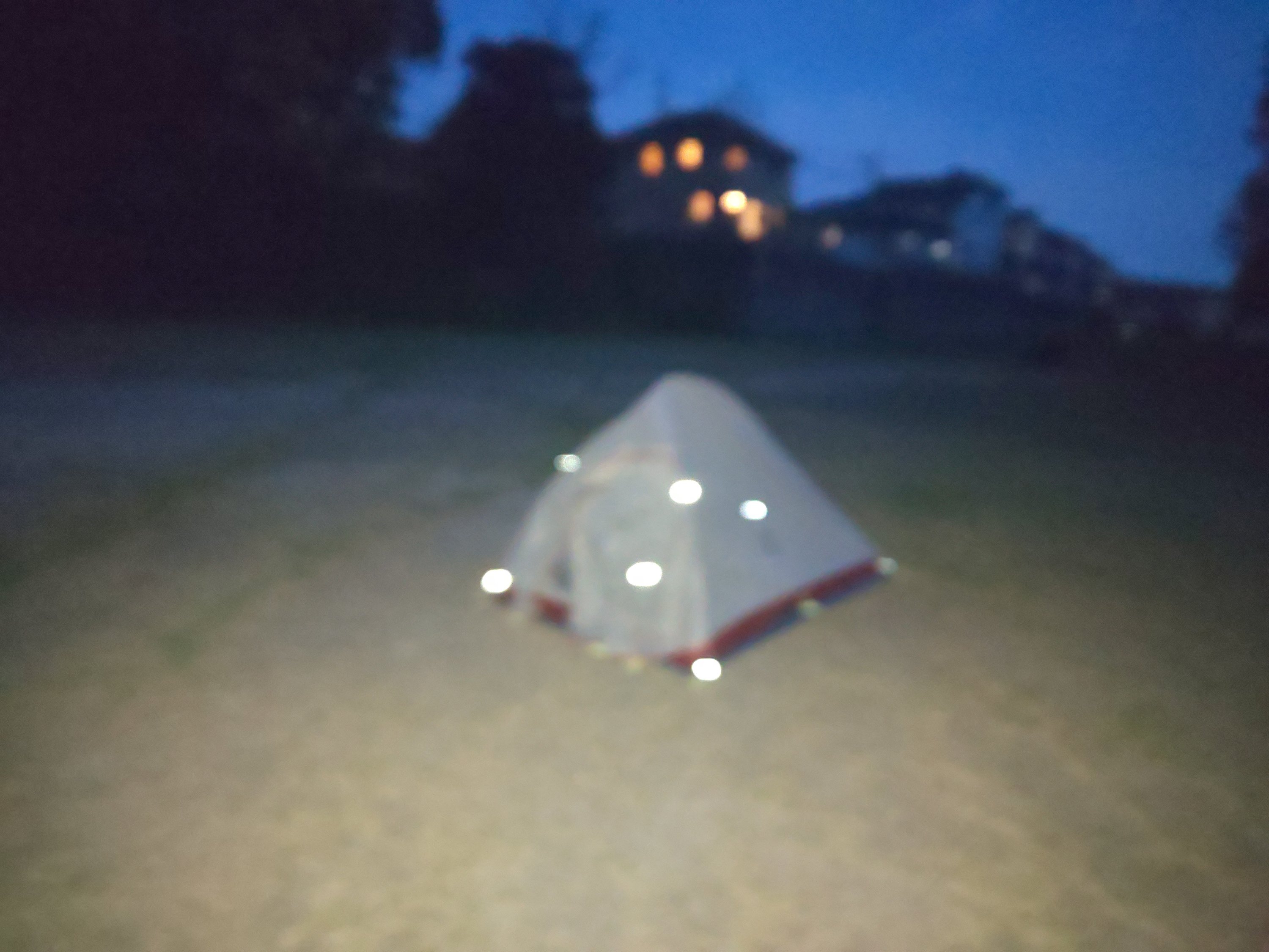 久々の心細いキャンプである。気を紛らわすためにテントの中でゲームをしてから寝るのであった。