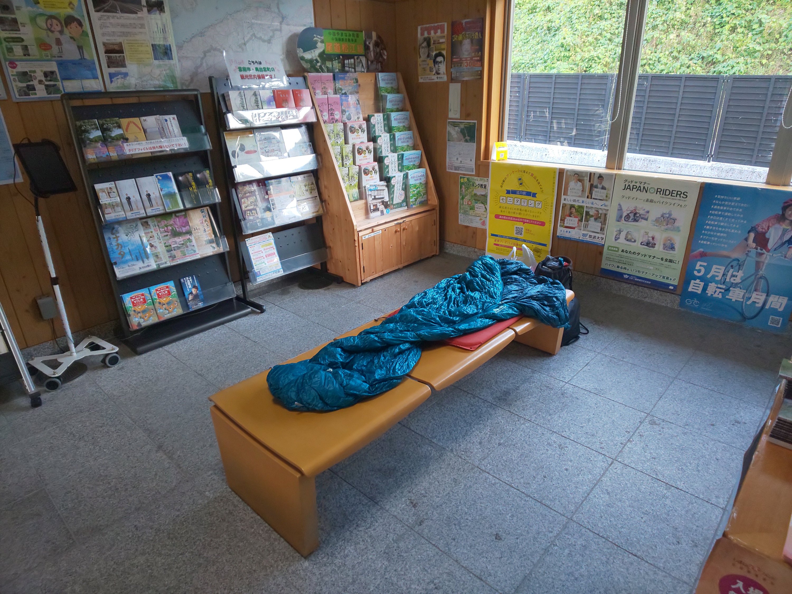 今日は『道の駅 おろちの里』で24時間空いている情報室を使っていいという許可を得れたので椅子の上で寝ることにした。