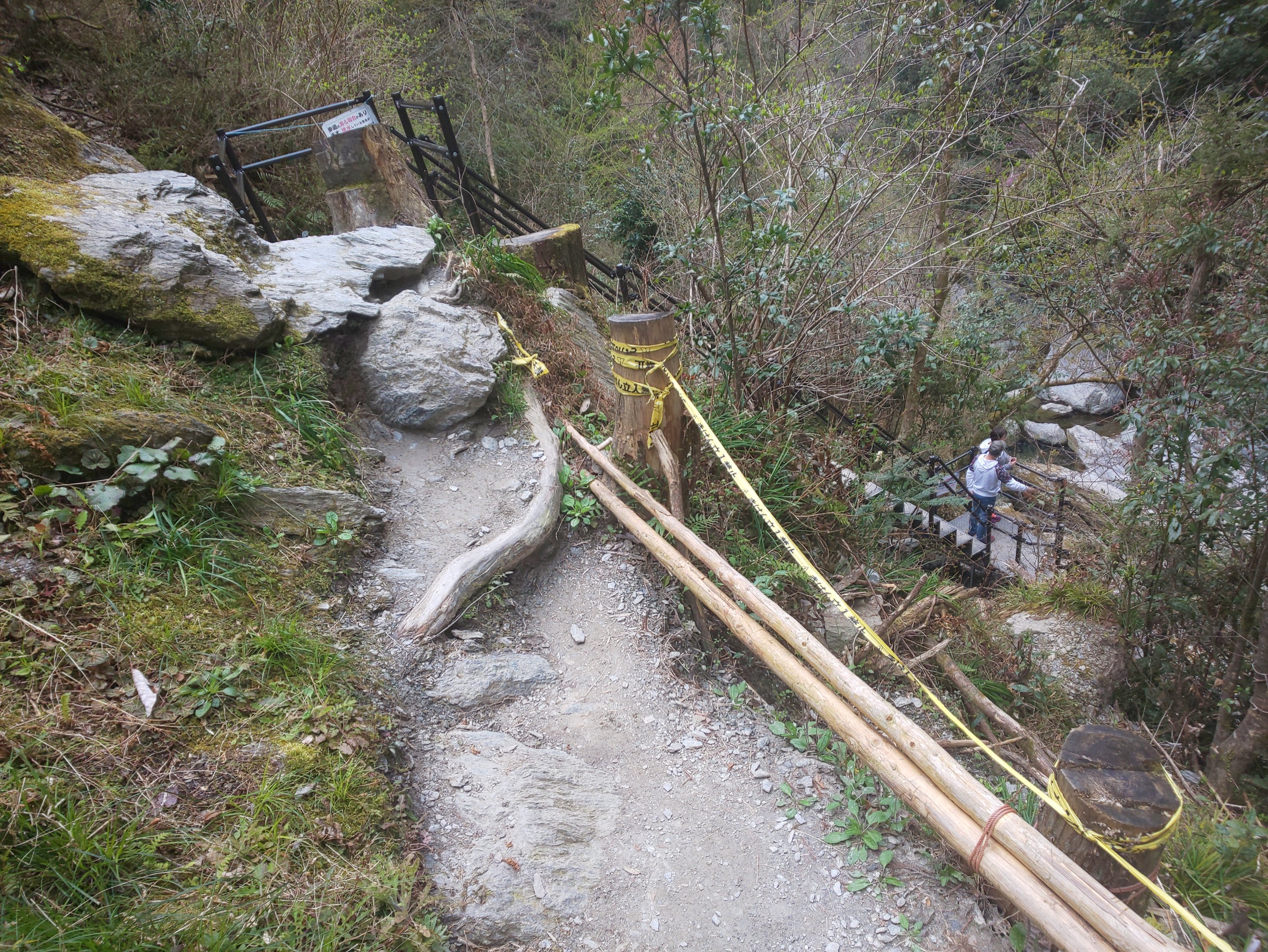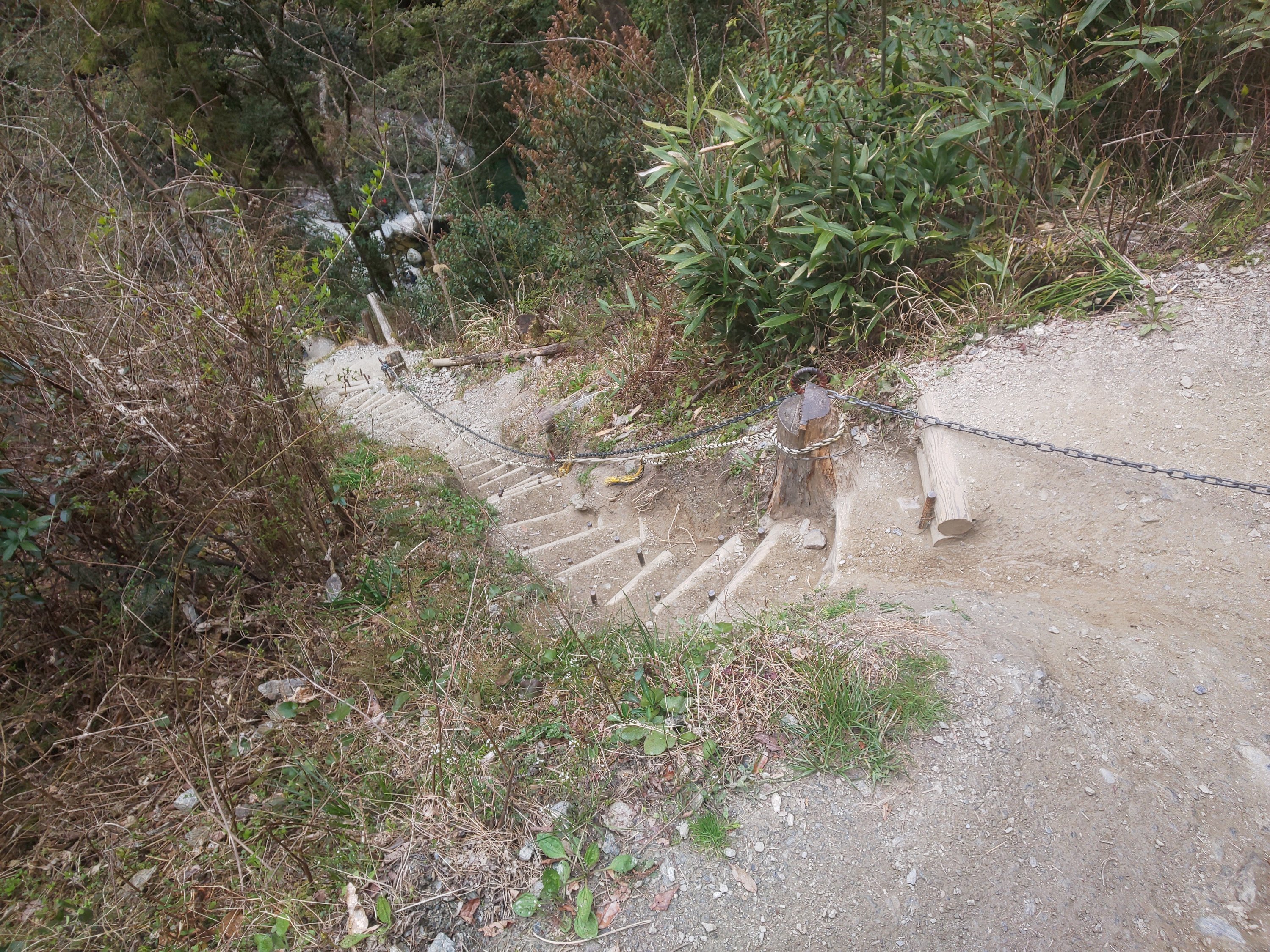 鎖を持って降りたり、岩を乗り越えたりする必要があります。