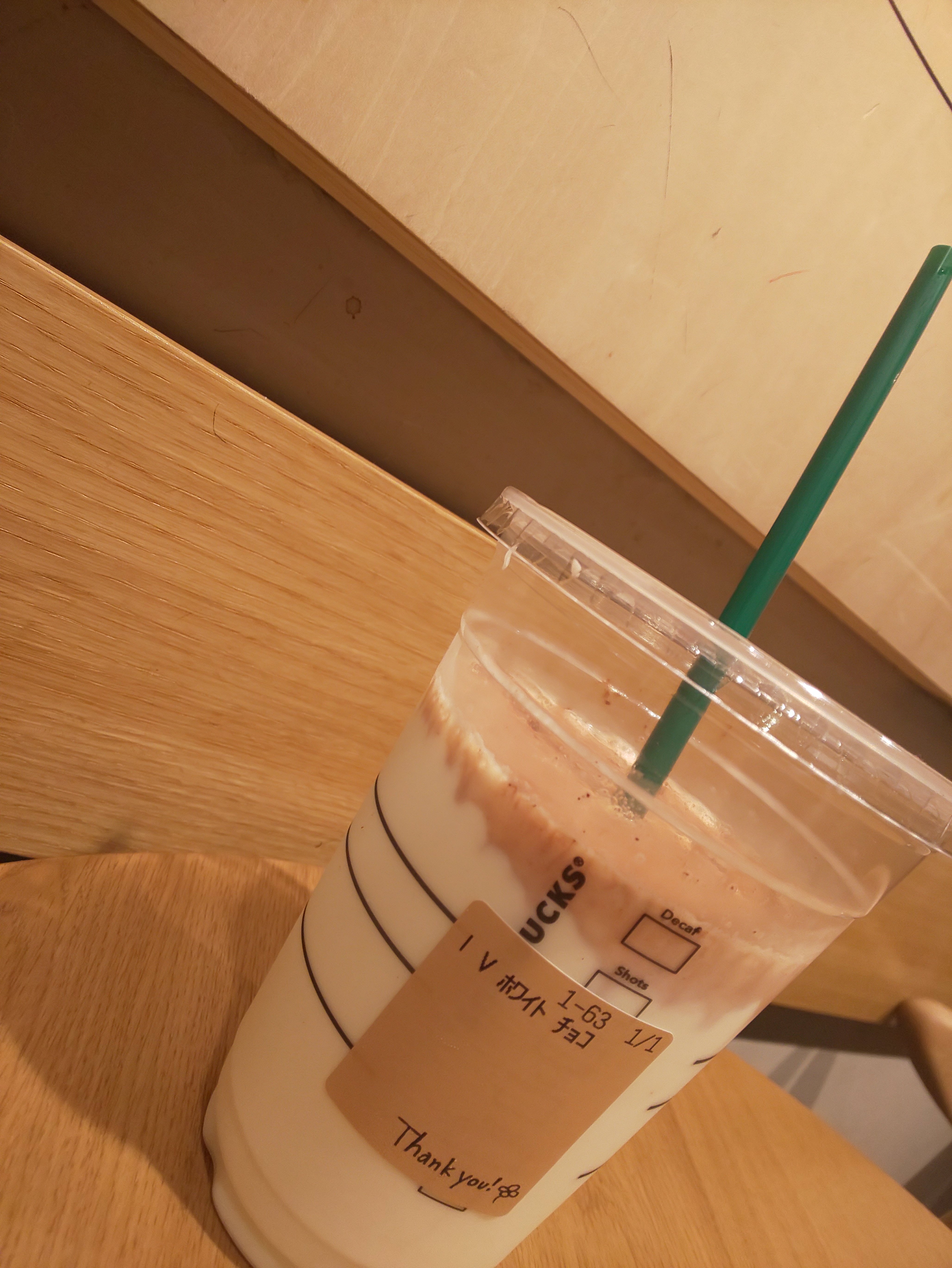 5分前行動ならぬ5時間前行動をして、待ち合わせの京都タワー内のスターバックスでホワイトチョコレートドリンクを飲んでいた。(店員さんにとにかく甘いやつといったらこれが出てきた。なかなか美味しかったです。)