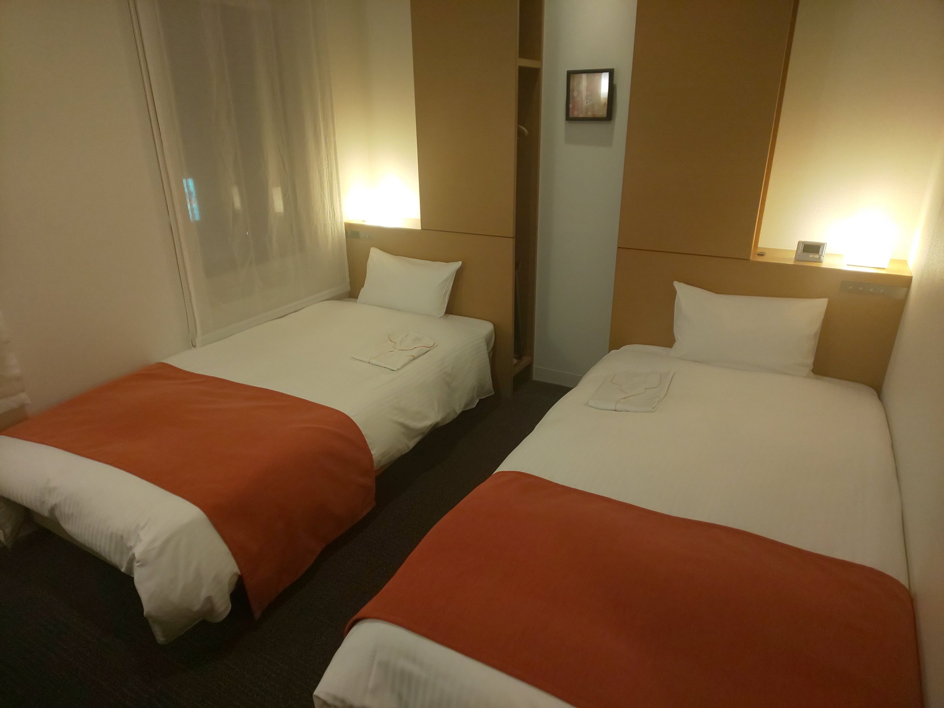 ホテルは京都駅直結のめちゃ綺麗なホテルで部屋に入るとベットが2個もあった。