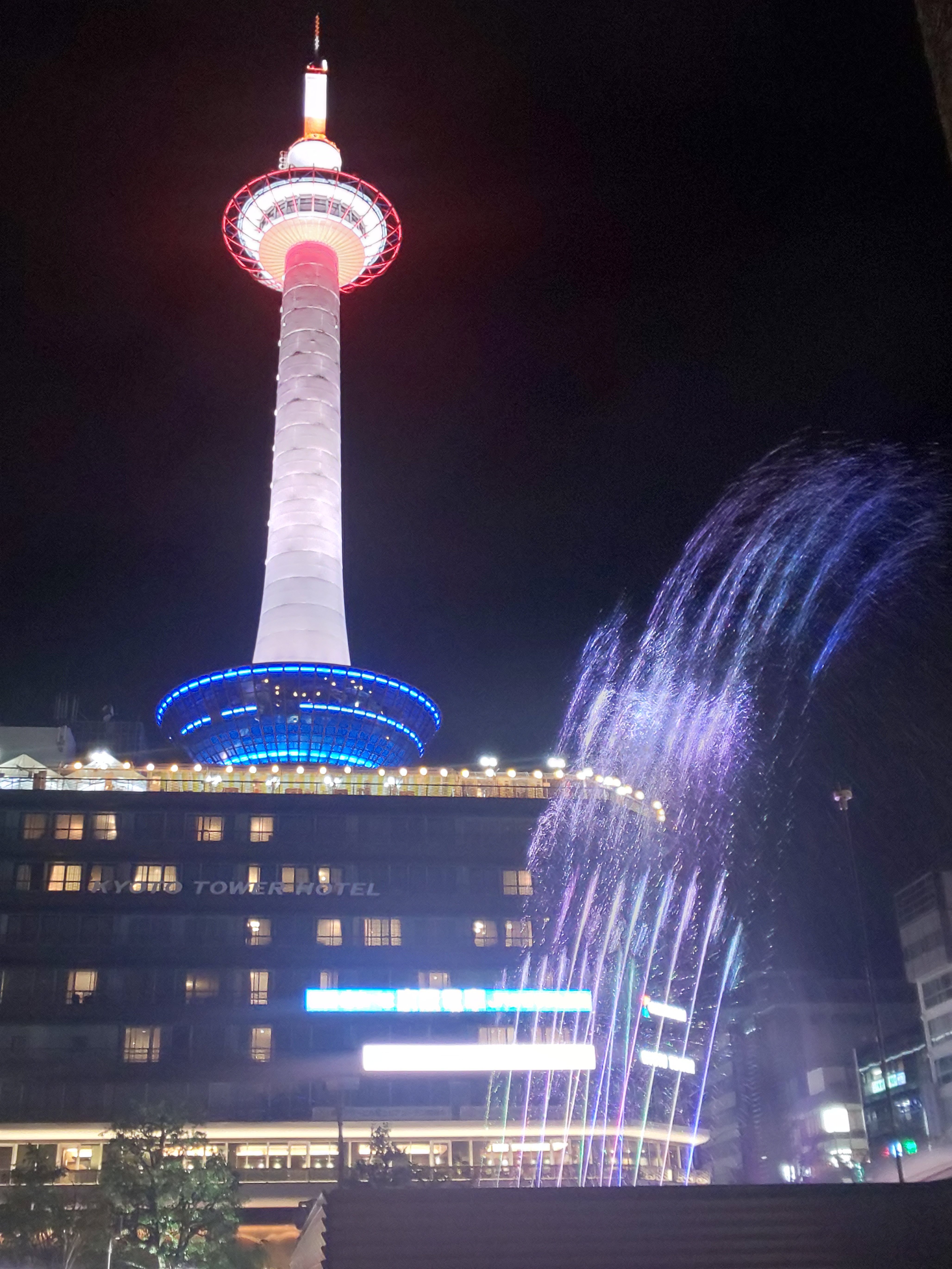 後ろの京都タワーもライトアップされて綺麗でとてもよかった。