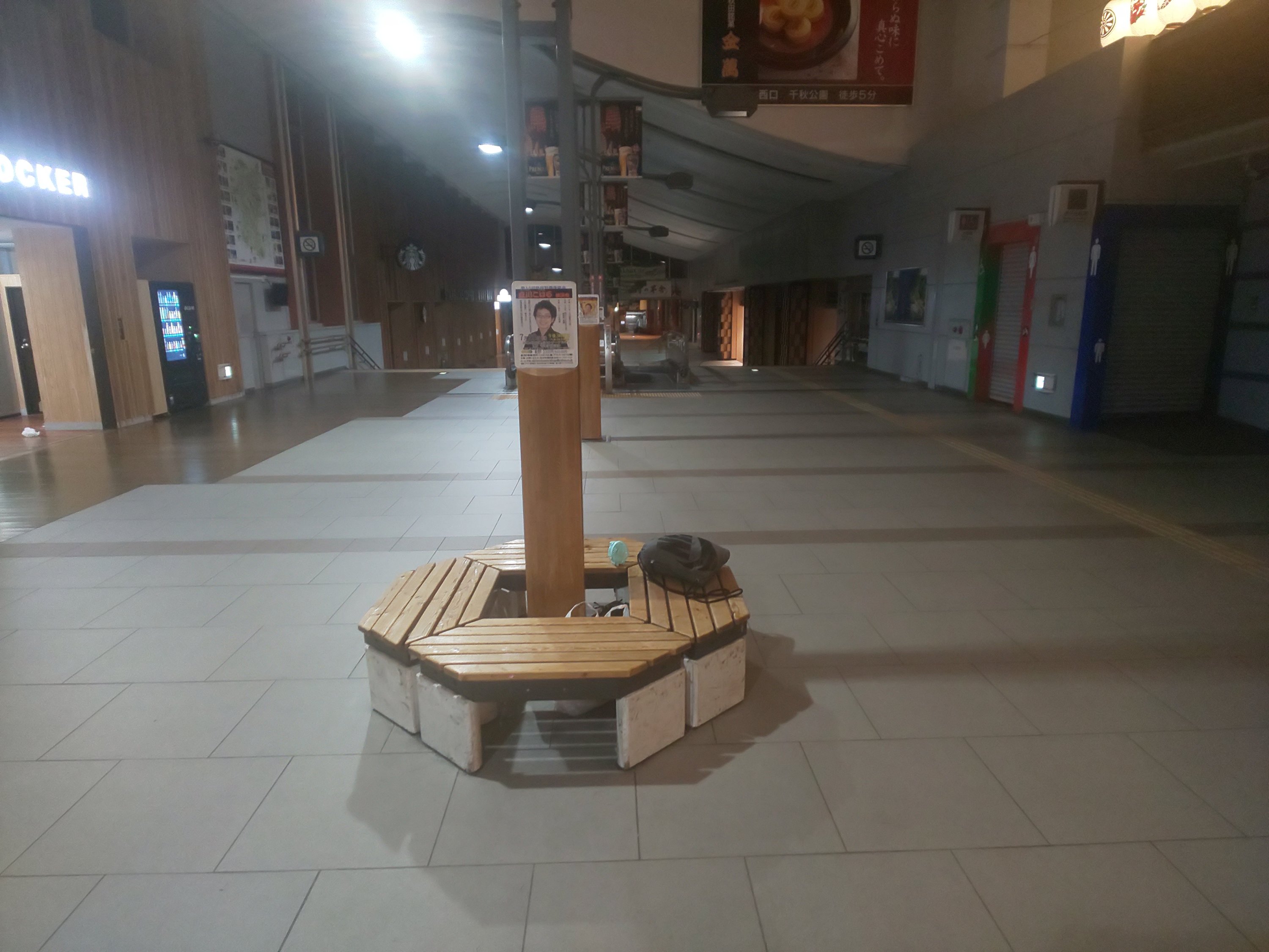 秋田駅には若者が椅子で寝ていたの、便乗してそこで寝ることにする。