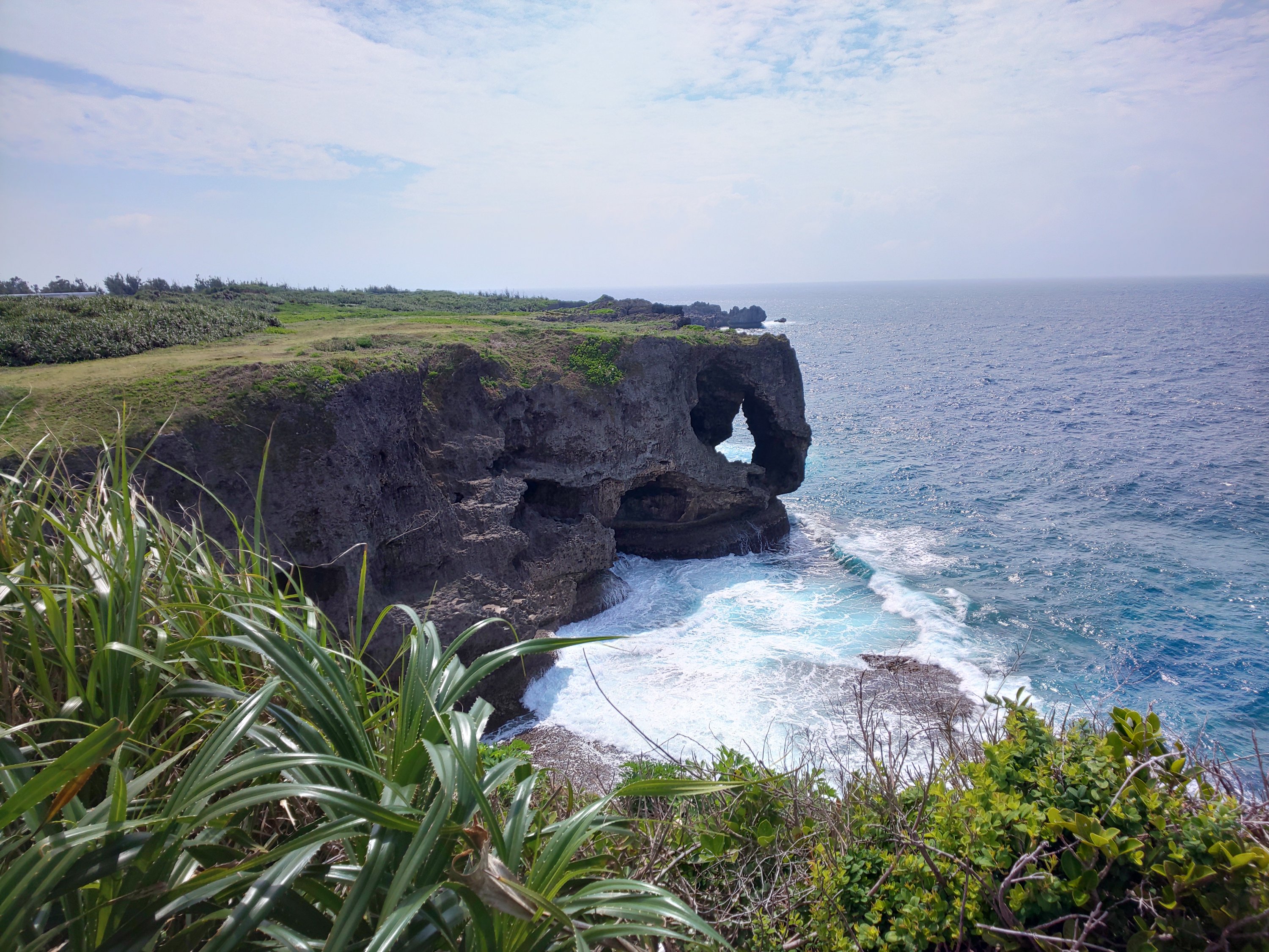 こちらも定番な観光地だが、『万座毛(まんざもう)』に足を運ぶ。景観がいいのと、海の青さが際立って綺麗である。