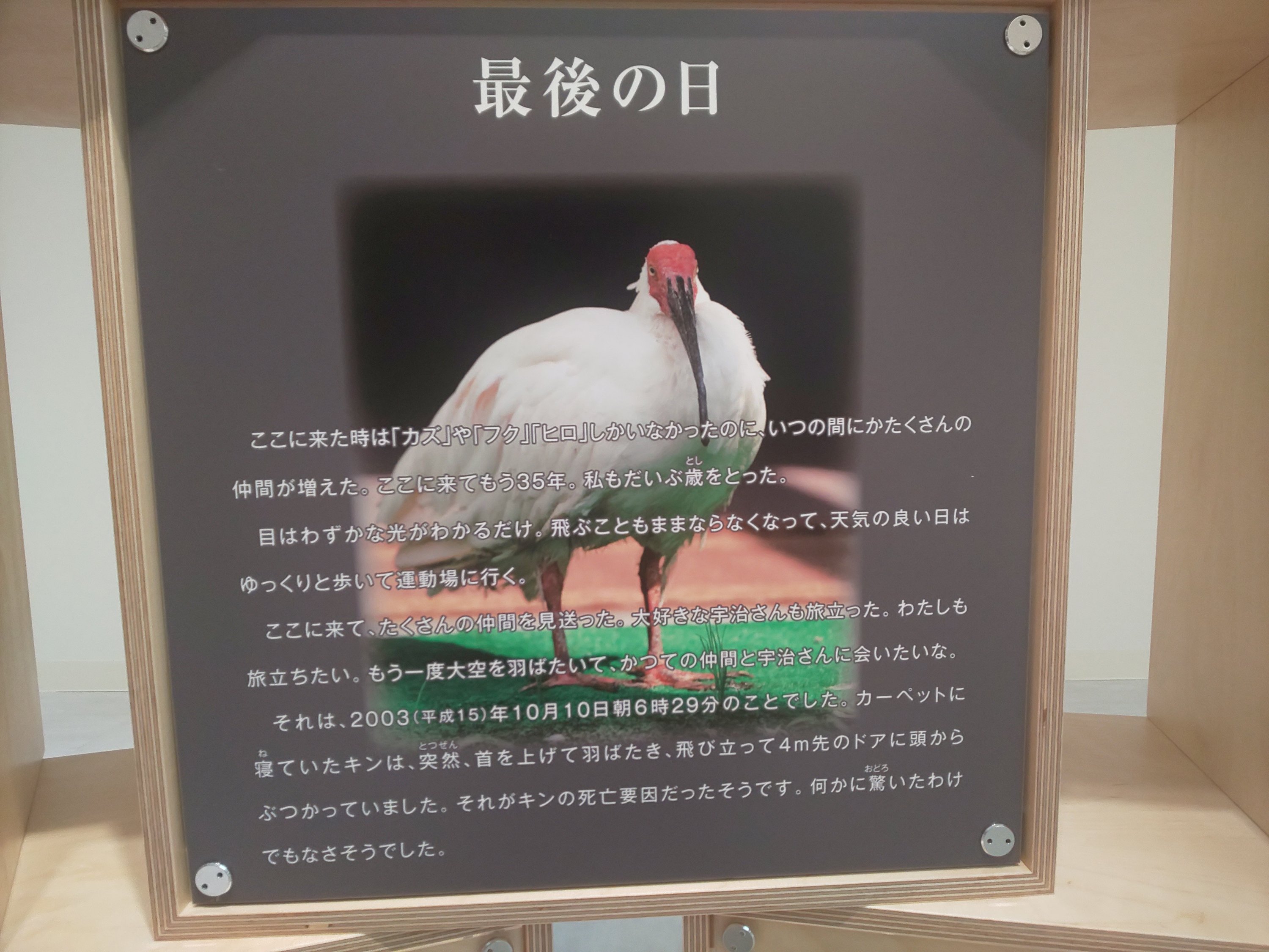それが、日本最後の朱鷺、キンです。(キンの名前は宇治金太郎さんから来ていたのですね。)