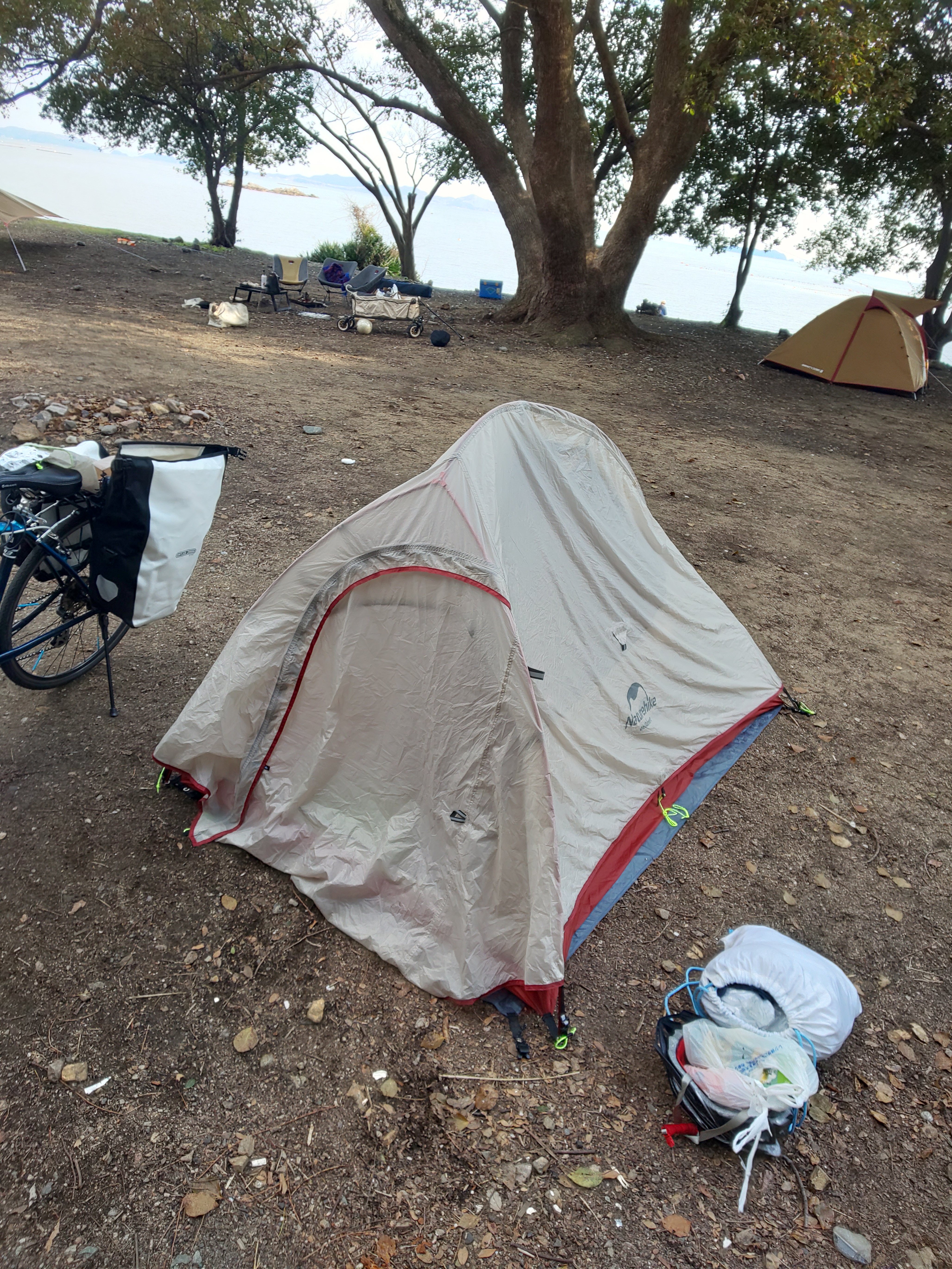 その次の日のテントの写真は頑張ってるな。リラックス度が関係してそう