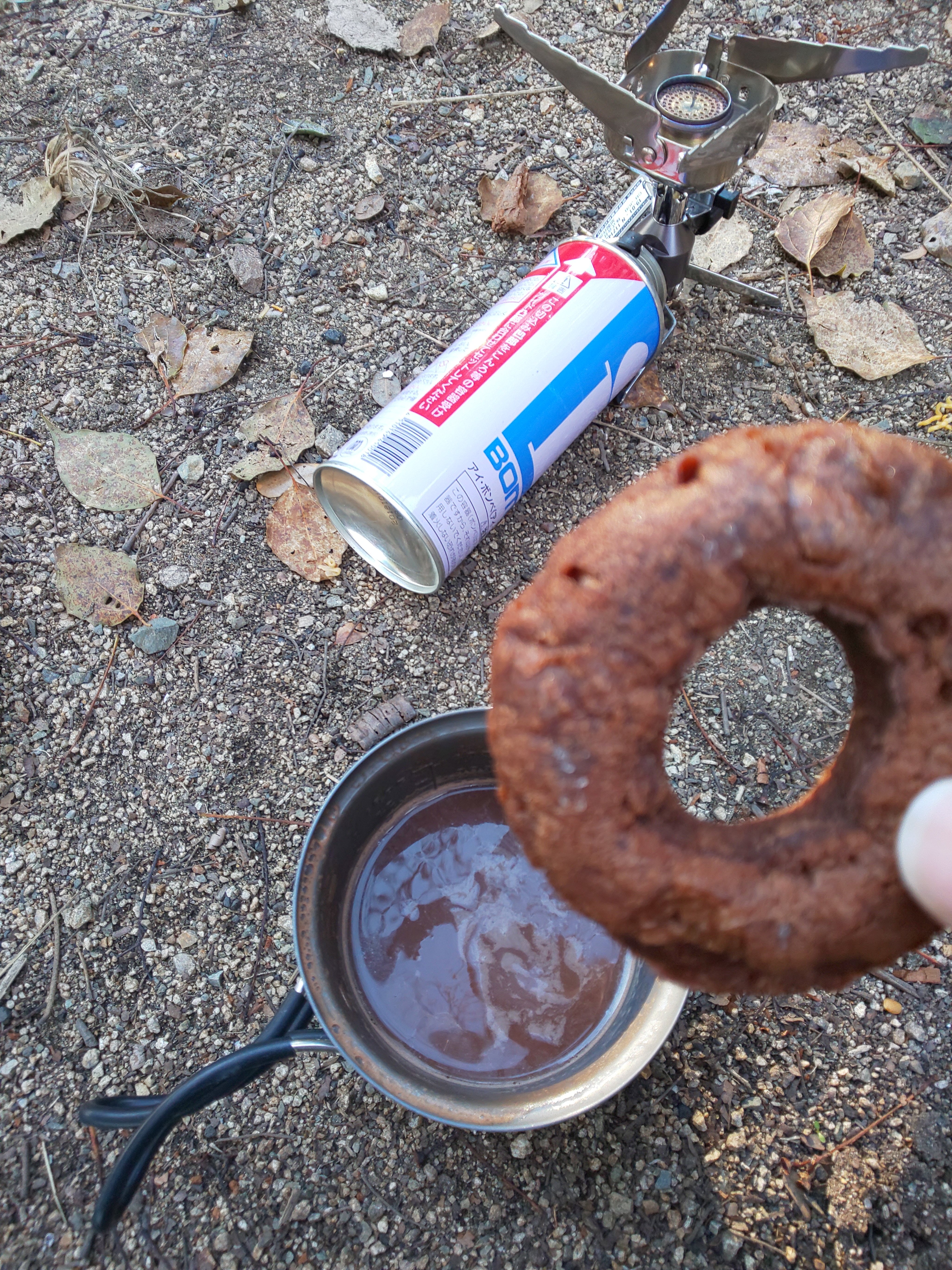チキンラーメンとホットココア、ドーナッツになります。ココアとかすごい汚い写真で申し訳ないです。