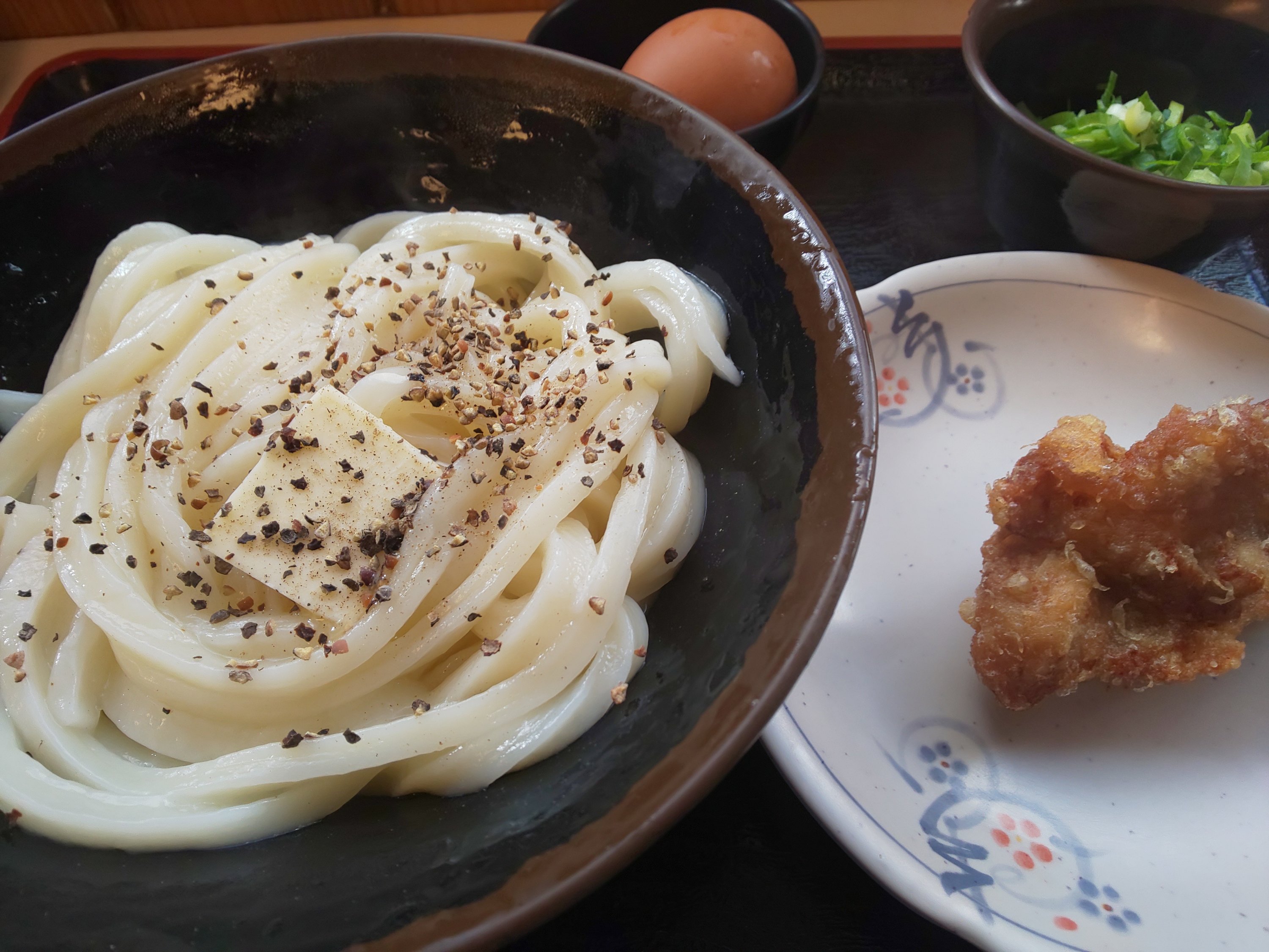 釜かけうどんはモチモチとコシがあった。しかし、どうやって食べていいわからなかった。汁をかけるにしても店内のどこでかけたらいいかわからないし、そのまま食べるのか?っと思って天ぷらをおかずに食べていた。多少、塩っ気があるのでそれで良かったのかもしれないが丸亀製麺を思いだしテーブルの上の醤油をかけたら思いっきり醤油でその後はすべて醤油味になった。(丸亀製麺のはだし醤油。)どうするのが正解だったのか今でも不明。