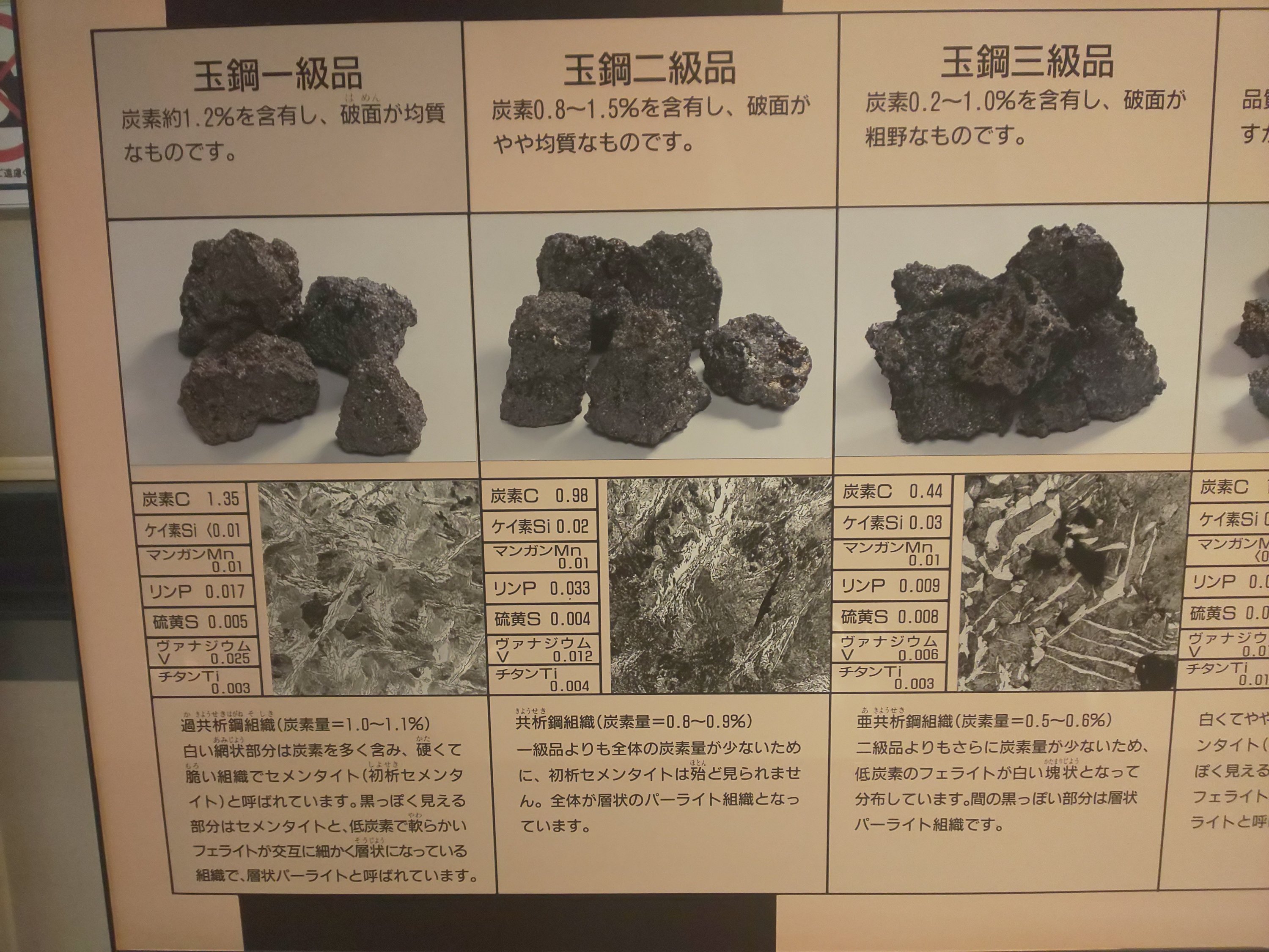 刀の材料、玉鋼も鉧にある上質な鋼のことを差します。(ちなみに、鋼も鉄の仲間ですょ。含有してる炭素の量が違い、それで性質に粘り強さが出てきます。)