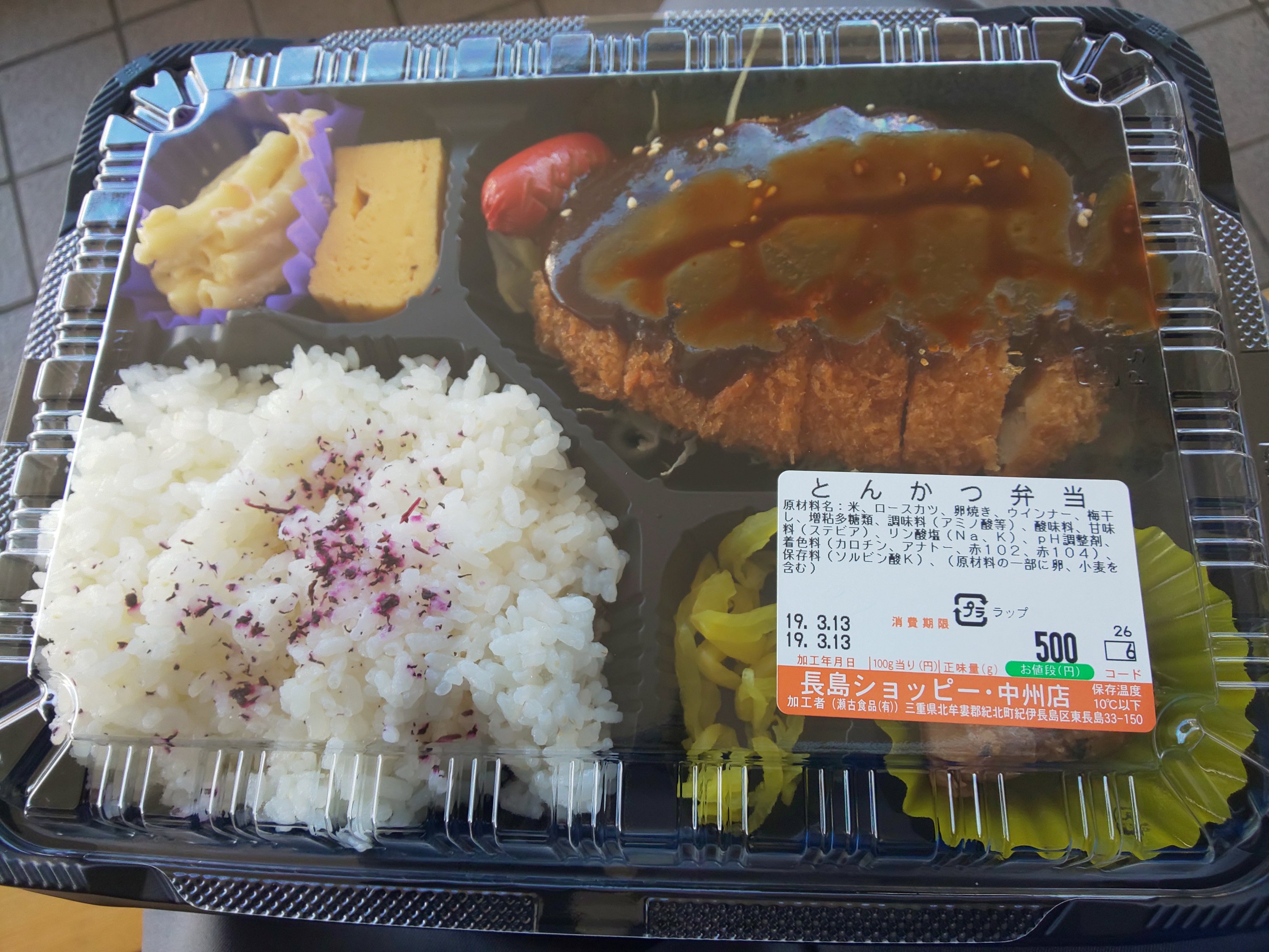 食べ物と飲み物が何でもいいから欲しかった。辺りを散策すると『長島ショッピー』というスーパーを見つけてそこで味噌カツ弁当を食べた。
