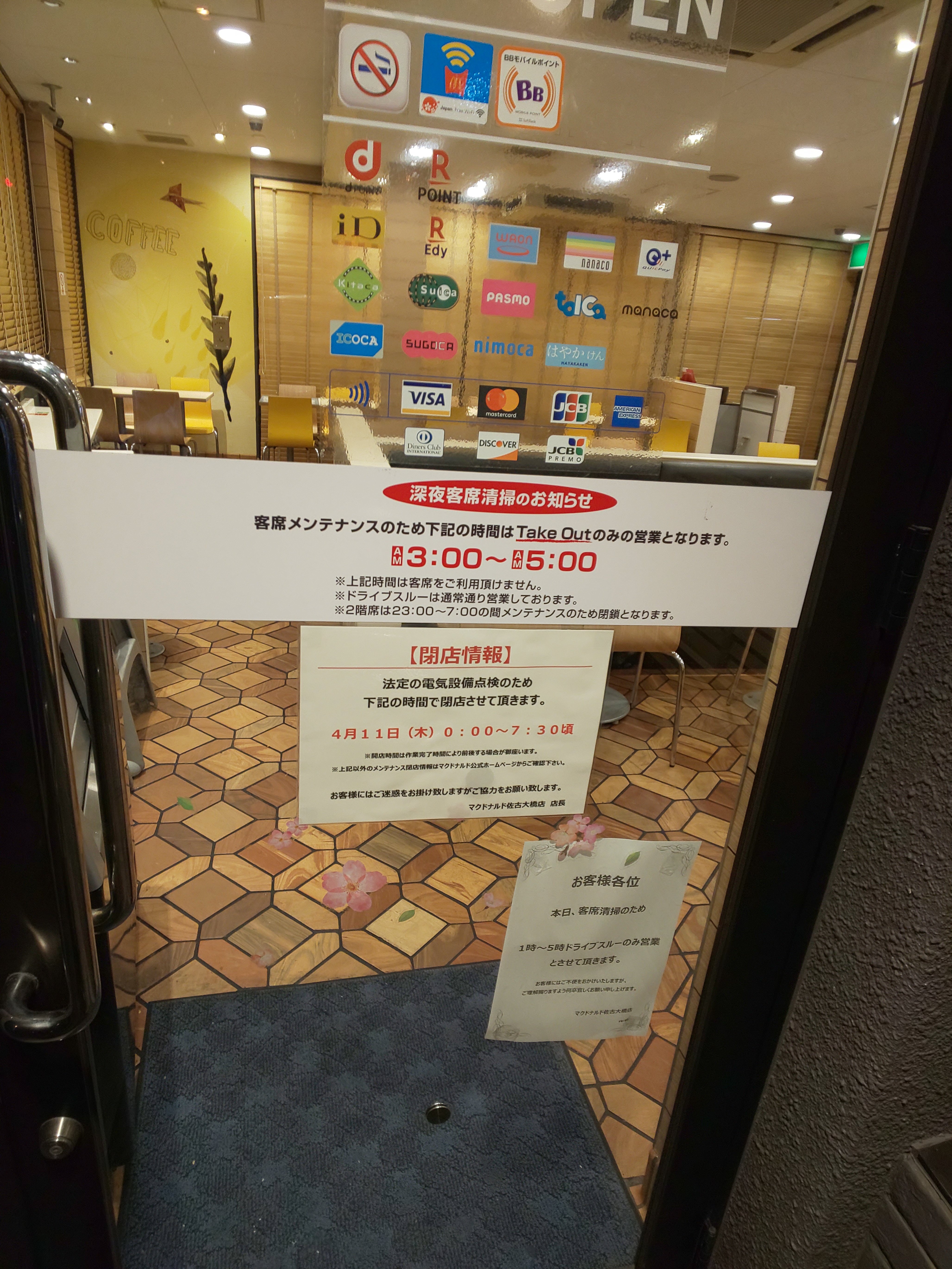 そして、玄関でまたスマホで24時間営業のマックを探し、6キロ進んだところにあった。小雨が降っているなか来た道を戻りながら30分くらいかかり次のマックに着いた。
