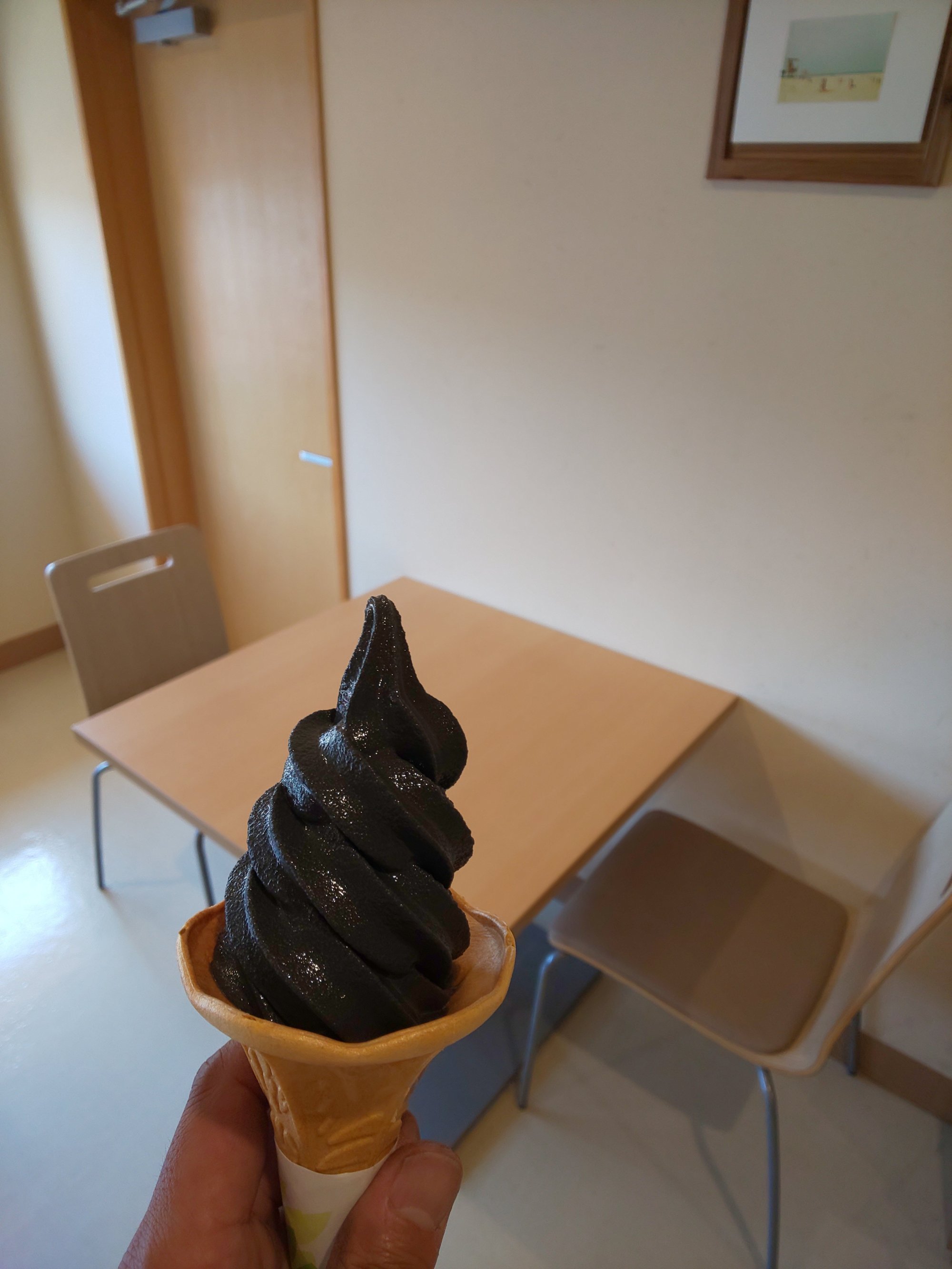 室戸の海洋深層水から作られた塩と高知の備長炭を使っているご当地ソフトクリーム。