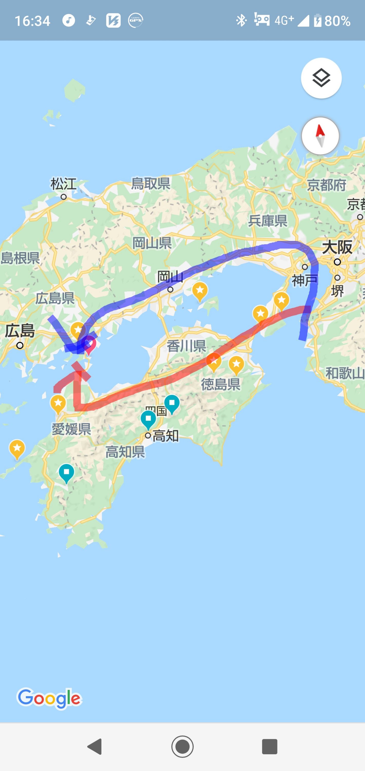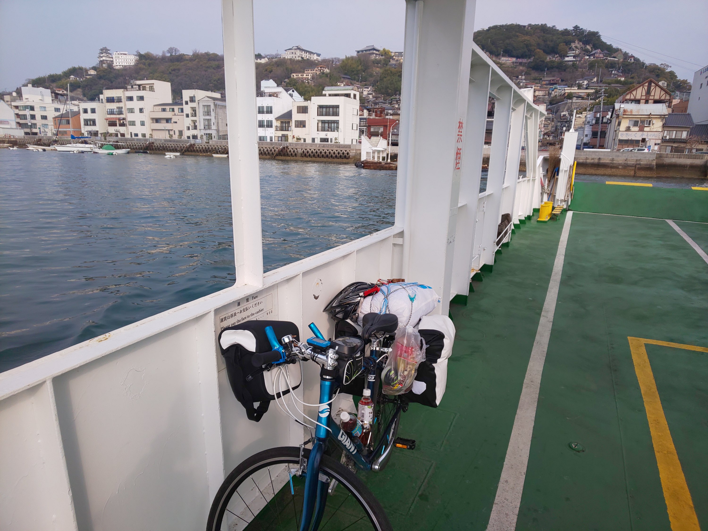 私が理解した感じだと、フランス人さんは潮岬を出発し、和歌山市でフェリーに乗った。そして、徳島県→愛媛県→しまなみ海道といったルートだと思う。
